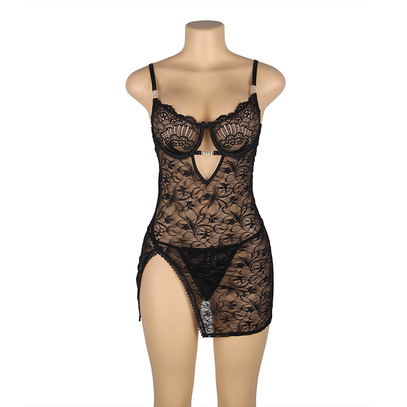 Europa y América más el tamaño pijama sexy encaje perspectiva sexy cinturón anillo de acero correa ajustable camisón transfronterizo suministro al por mayor