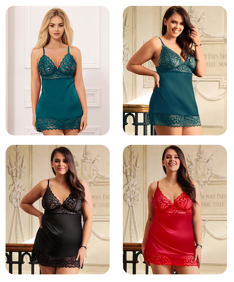 El comercio exterior de Europa y América más tamaño sexy pijamas sexy encaje patrón Correa camisón gordo hermana homewear entrega de una sola pieza