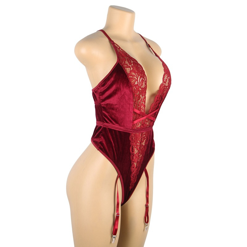 Europa y América más tamaño lencería sexy encaje sexy terciopelo costura Liga traje Correa mono transfronterizo al por mayor