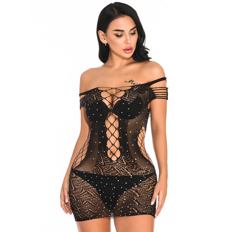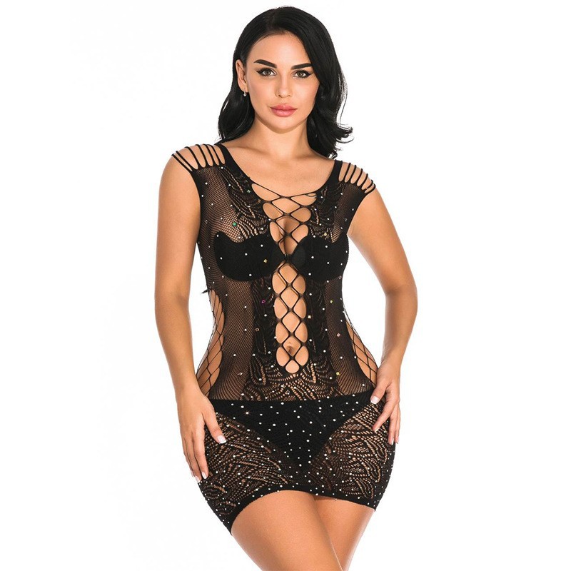 Europa y América más tamaño sexy Lencería diamante medias sexy hueco perspectiva mono Amazon al por mayor 3476