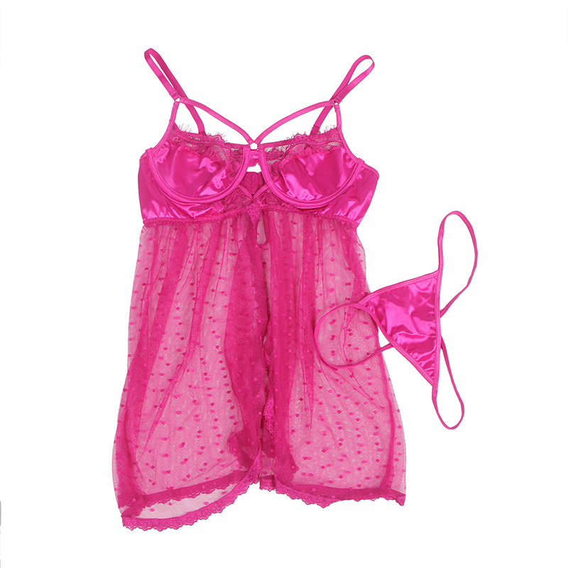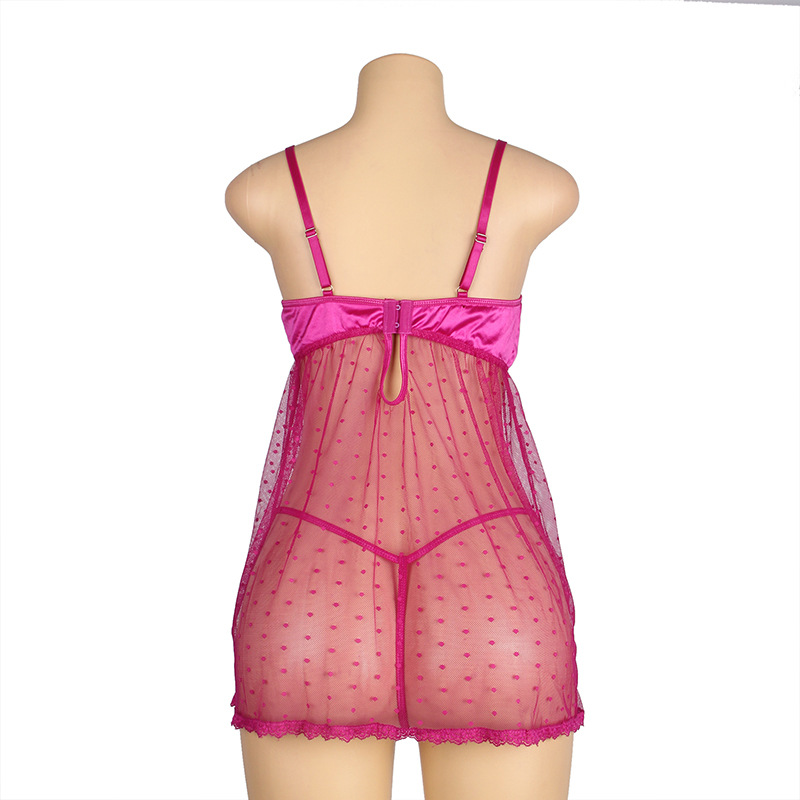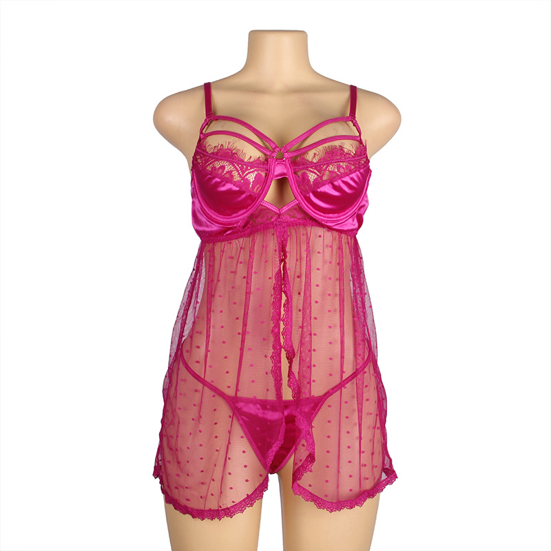 Lencería sexy europea y americana al por mayor más tamaño malla transparente sexy Correa camisón frente hendidura seductora ropa interior de tres puntos