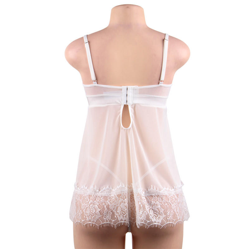 Europa y América más el tamaño de la ropa interior sexy de las mujeres sexy Correa push up camisón de malla de encaje transparente pijamas traje de comercio exterior