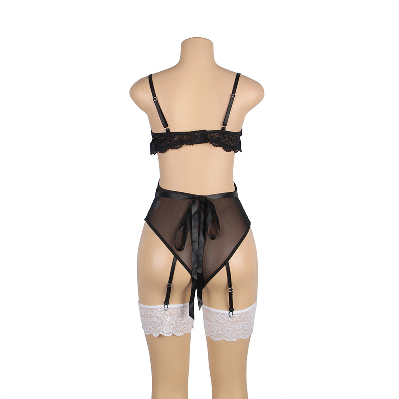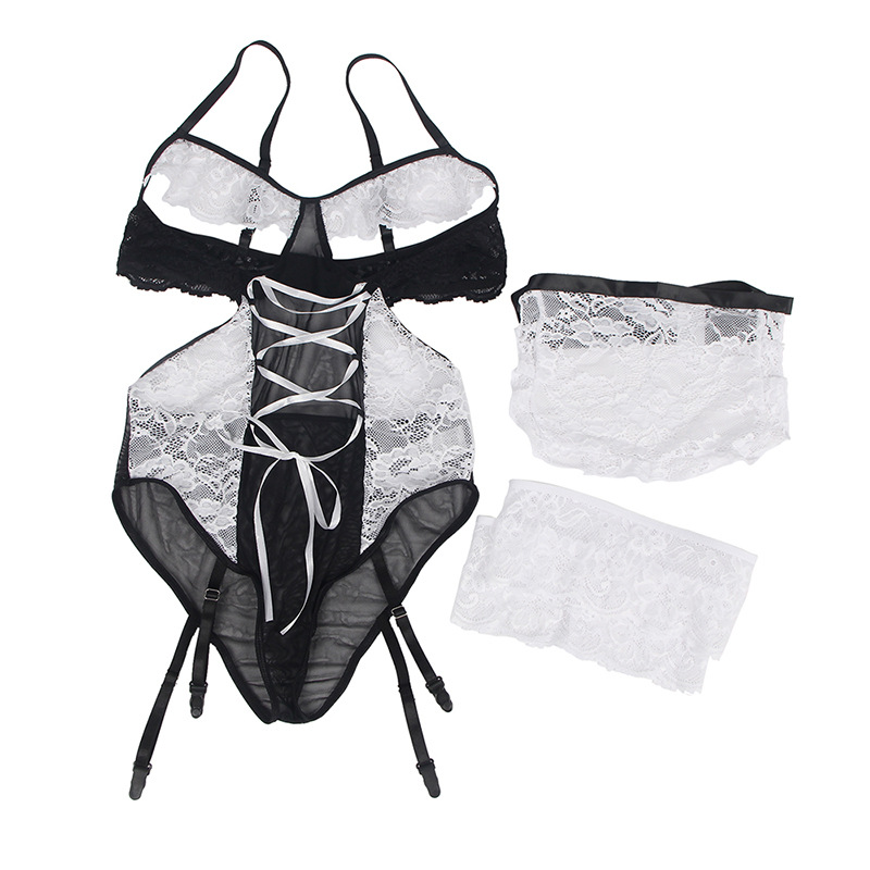 Lencería sexy al por mayor más tamaño europeo y americano camisón Chubby Girl Maid vestido con anillo de pierna encaje traje
