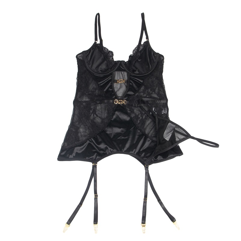 Comercio exterior europeo y americano más tamaño sexy Lencería mujer encaje costura gamuza sexy hueco Liga camisón suministro al por mayor