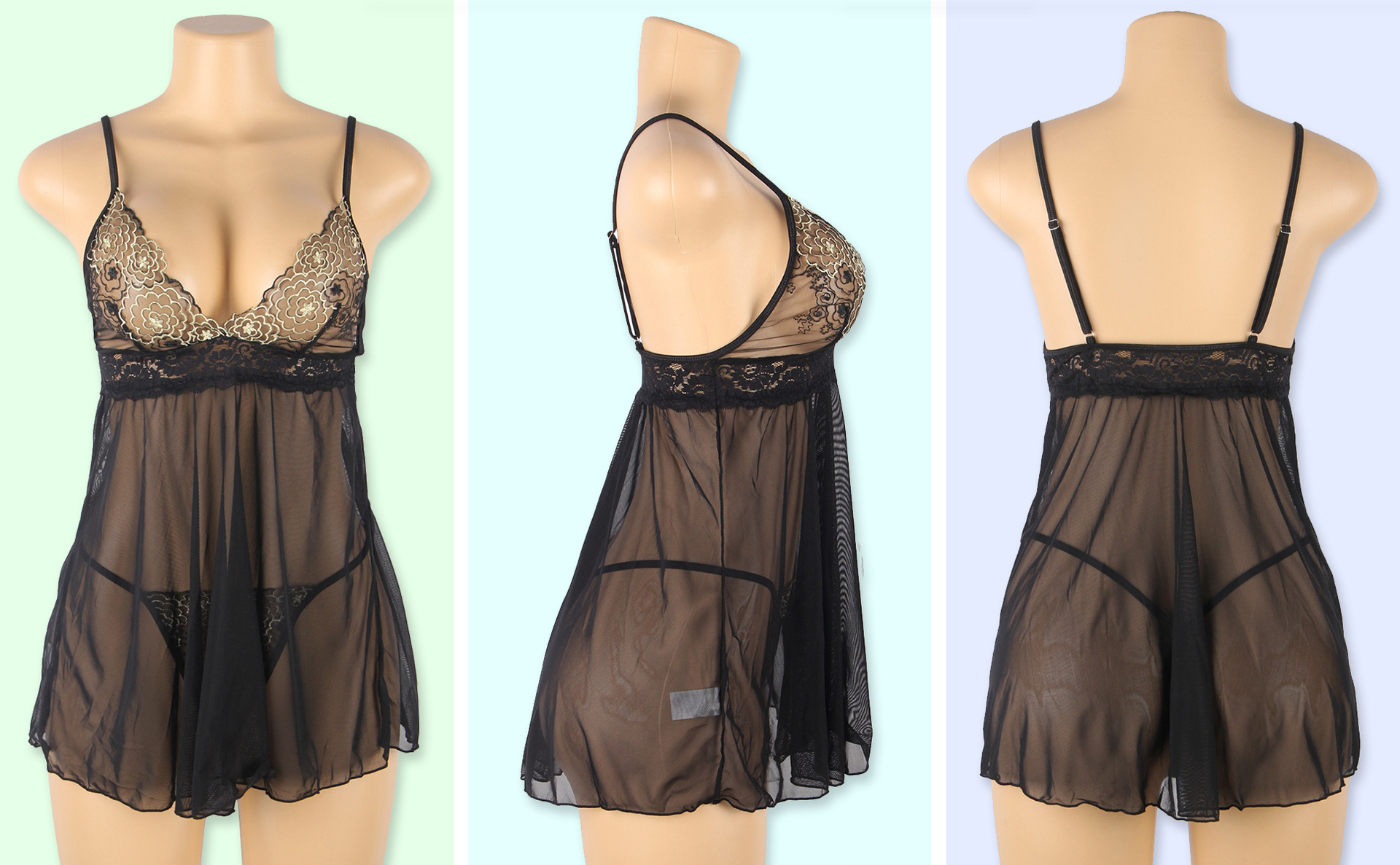 Comercio exterior más tamaño Correa sexy Lencería de las mujeres europeas y americanas sexy encaje malla perspectiva camisón Amazon r81039