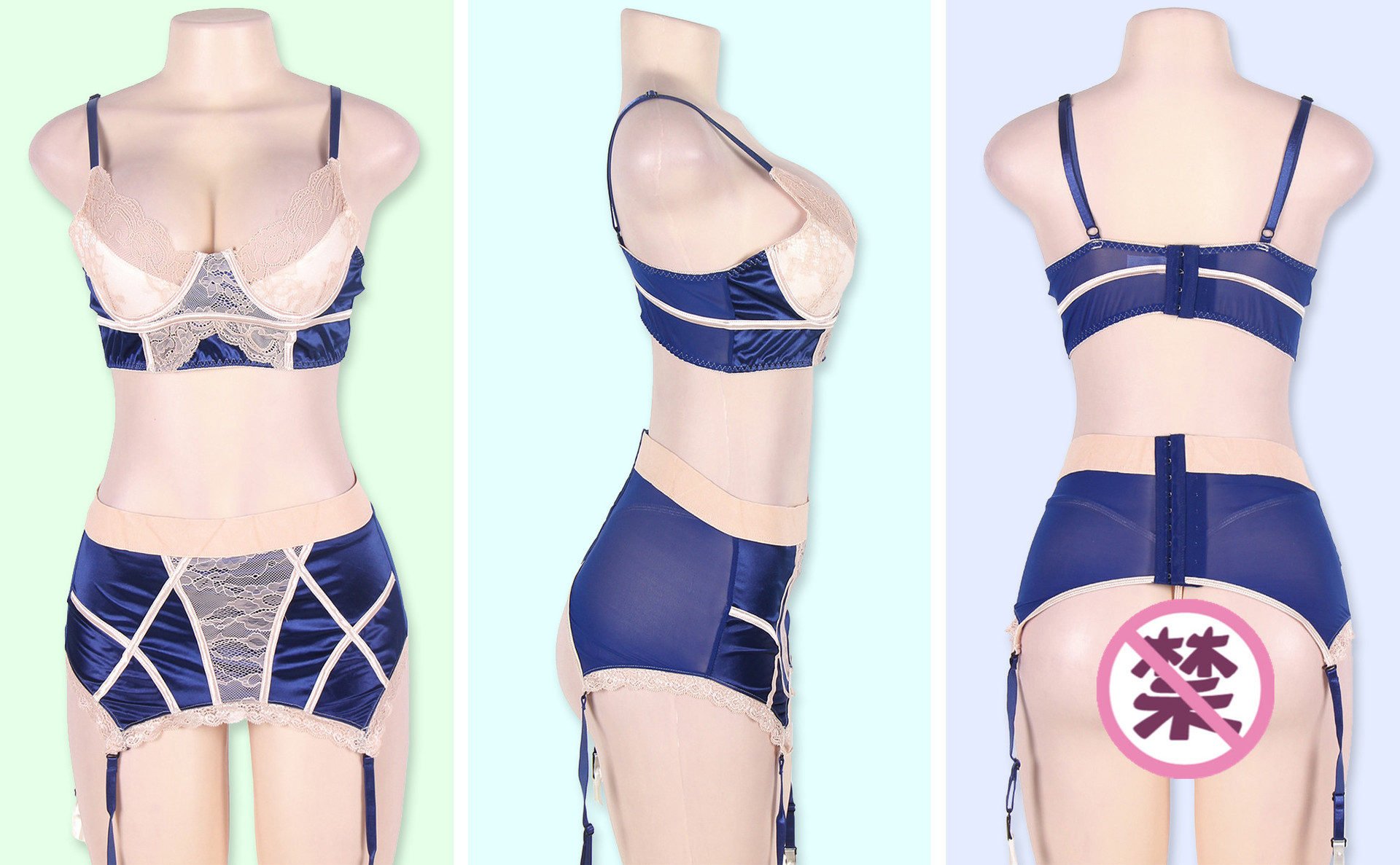 Amazon lencería sexy traje de tres puntos sexy bordado Liga pecho almohadilla anillo de acero breasted 80186
