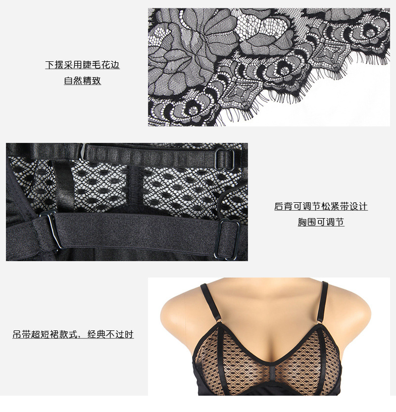 Comercio exterior más el tamaño de lencería sexy Sling anillo de acero camisón de malla ver-a través de pijamas Amazon wish80805