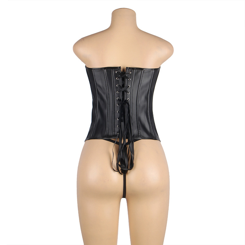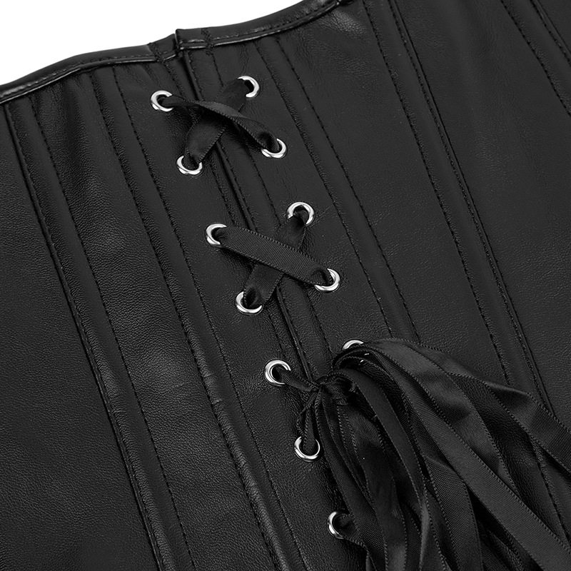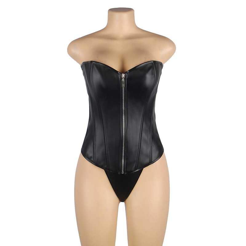 Corsé sin tirantes de cuero para comercio exterior, lencería de talla grande, prenda moldeadora estilo punk con cremallera y diseño de lazos, prenda de control de abdomen.