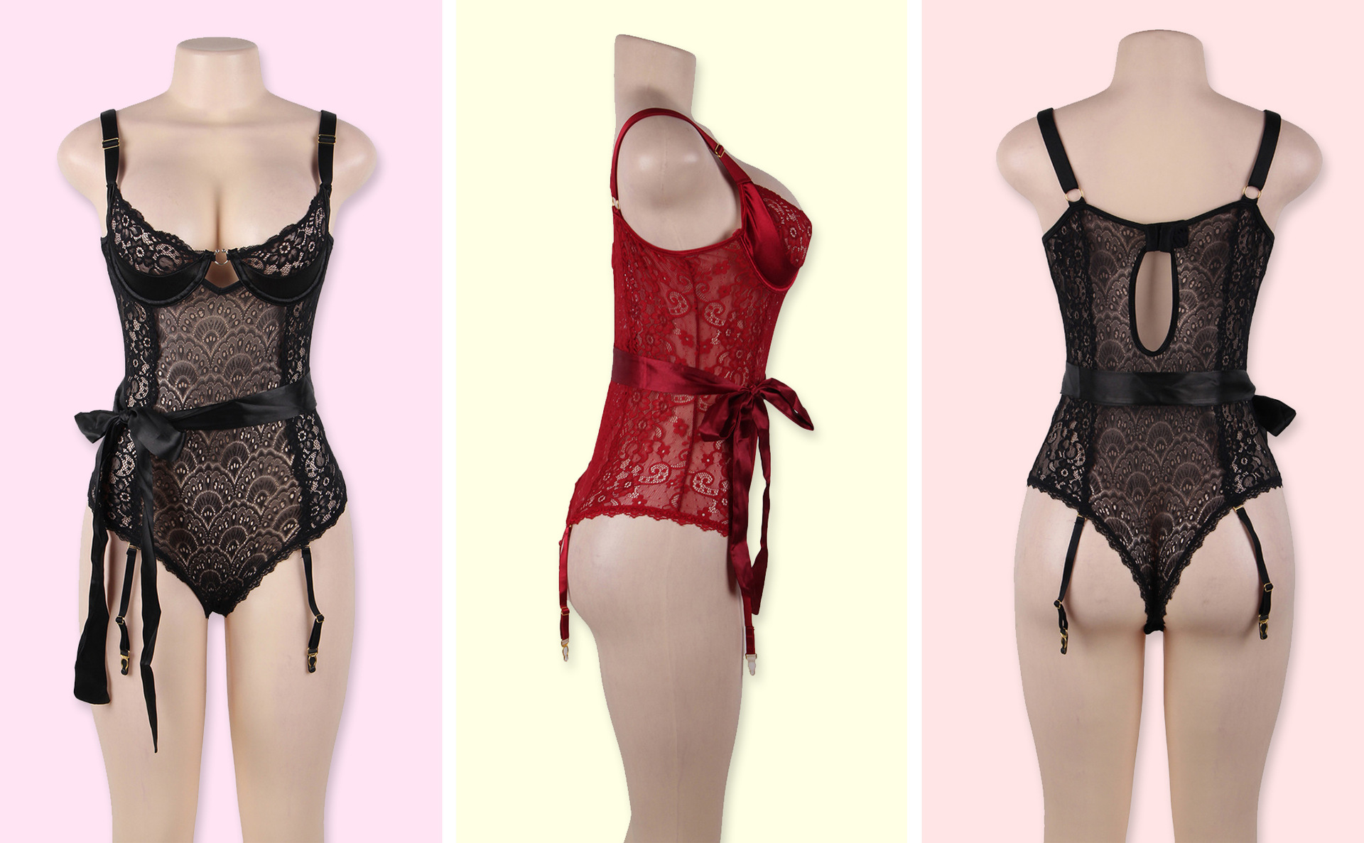 El comercio exterior de Europa y América Plus tamaño sexy Lencería ver-a través de acero soporte Liga de una pieza de encaje sexy pijamas 80623