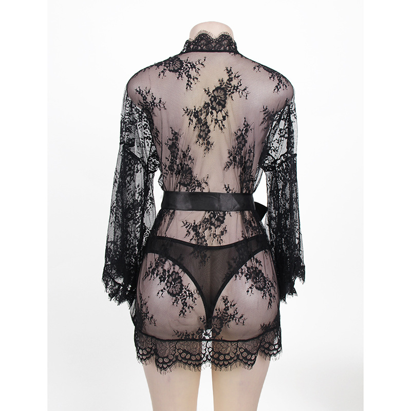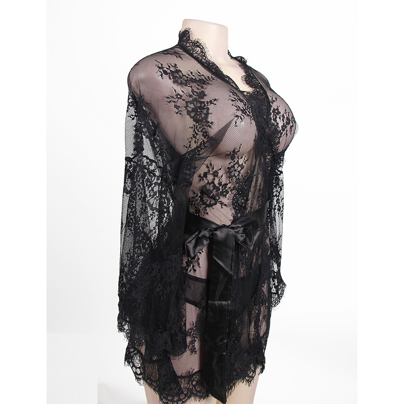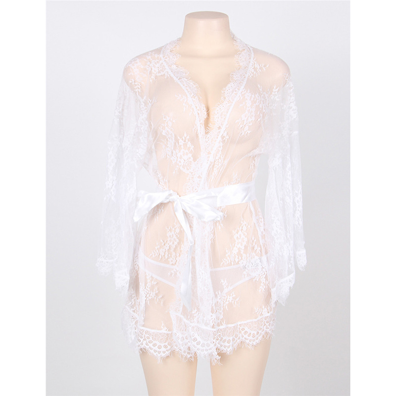 Europa y América más el tamaño de encaje sexy Lencería traje adulto tentación transparente camisón cardigan Pijamas