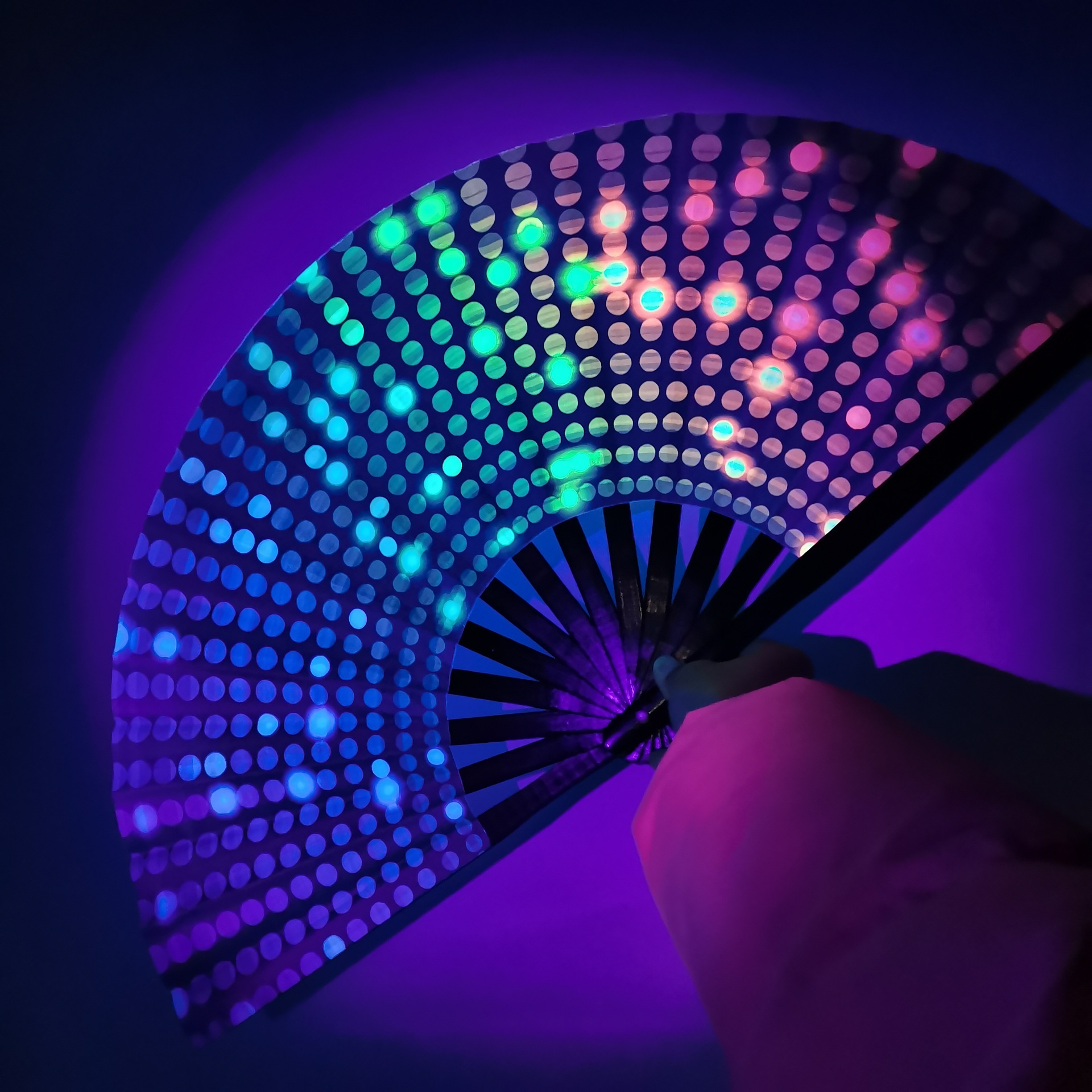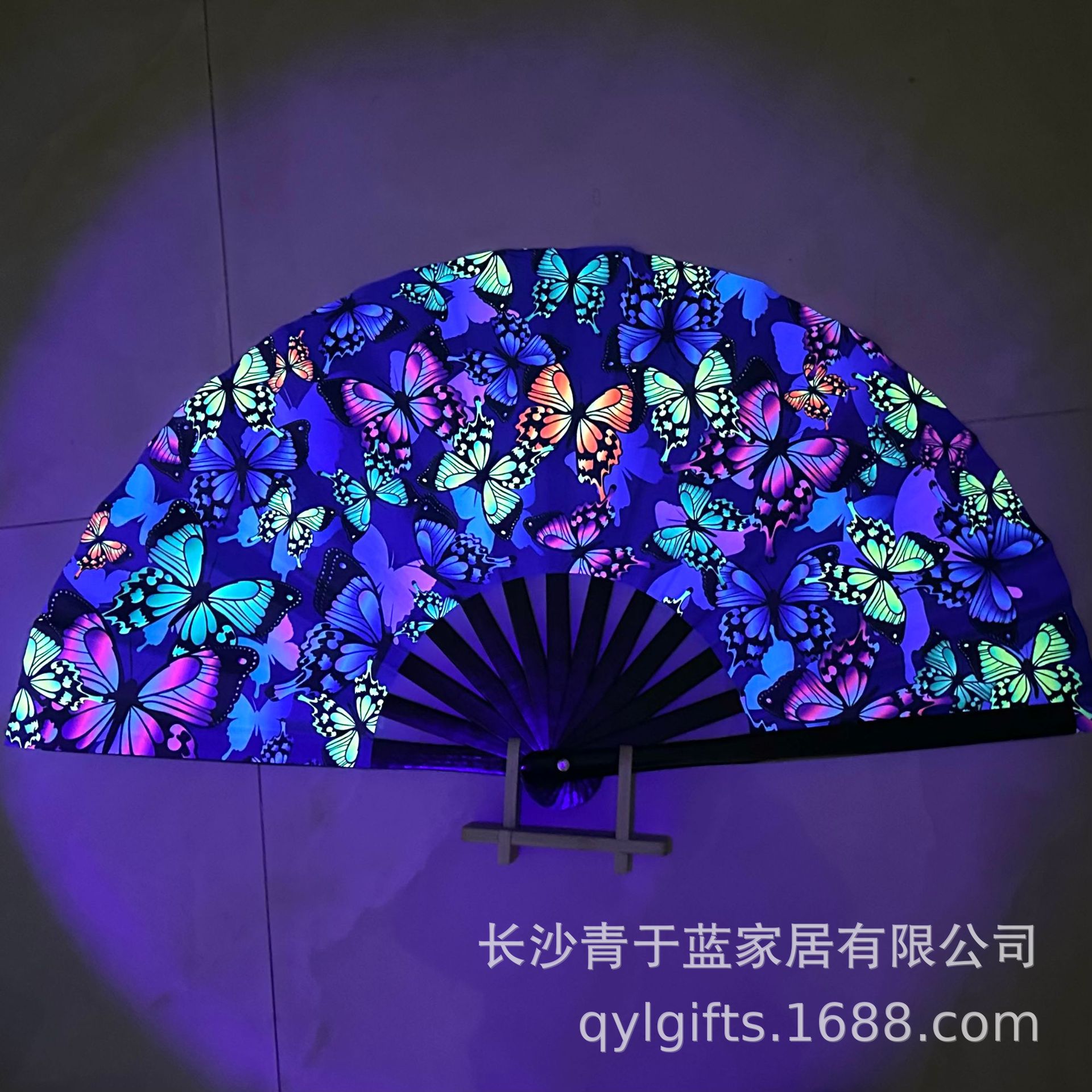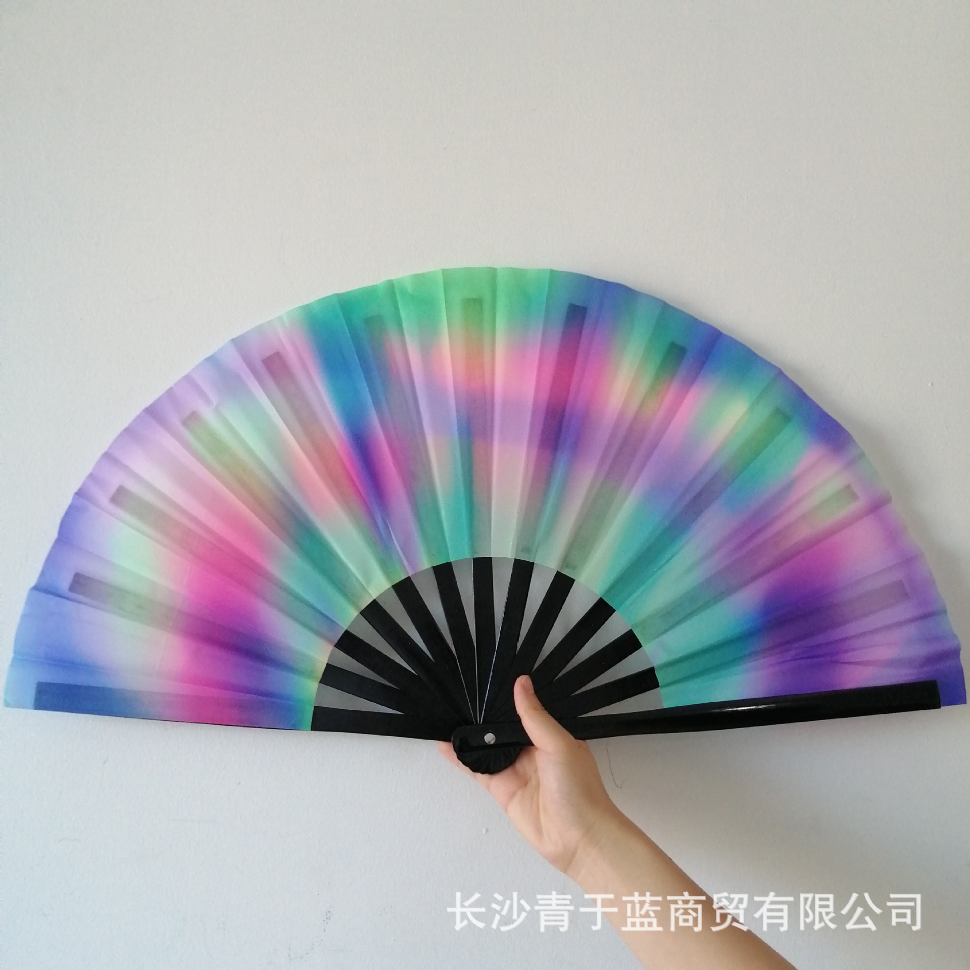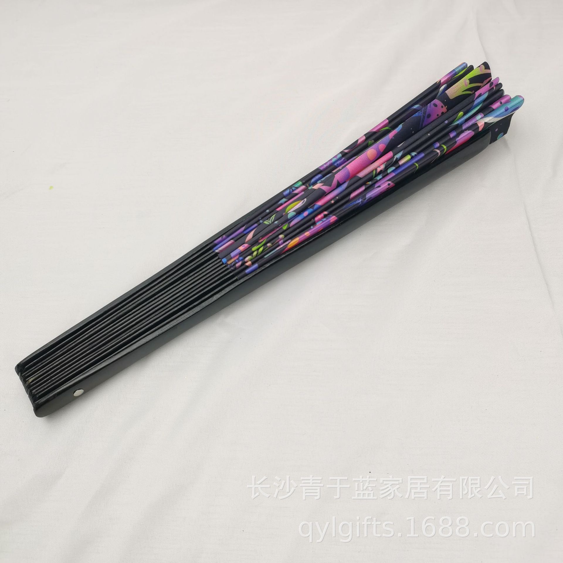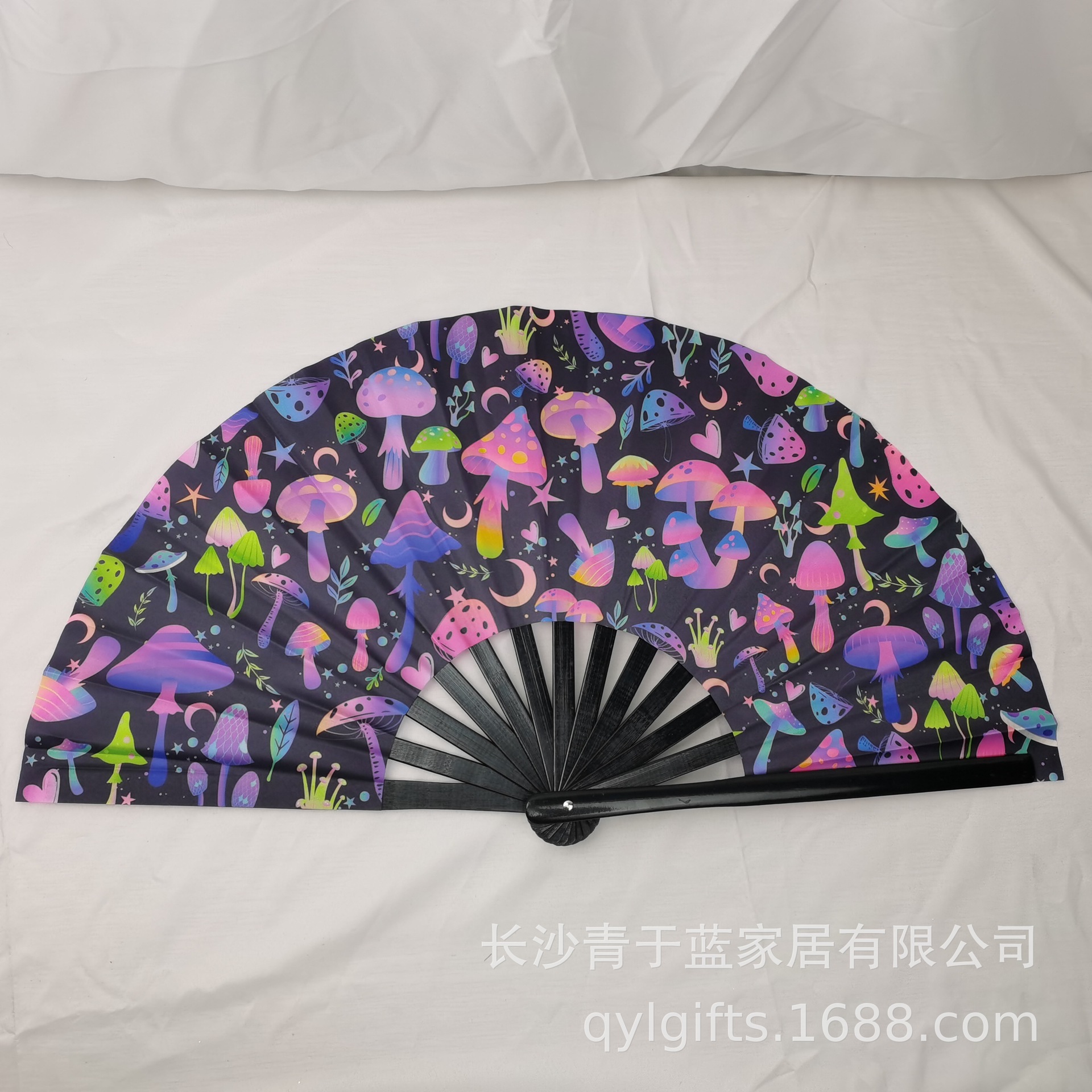10 pulgadas hueso de bambú negro Oxford tela impresión de tinta UV ventilador fluorescente multicolor al por mayor opcional