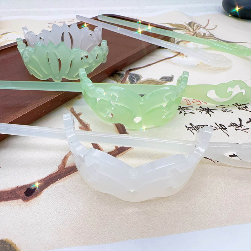Jade imitación de ácido acético corona de cabello pinzas de cabello de Xiaozhong nuevo estilo chino de alto nivel pinzas de cabello de estilo antiguo Hanfu paso agitar pinzas de cabello tocado