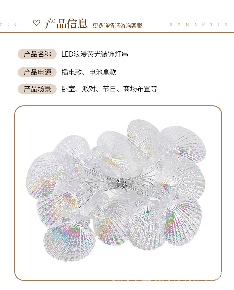 Conchas pintadas LED transfronterizas, estrellas de mar, luces de concha, cadenas de luces, puestos de mercado nocturno de alto valor, luces ambientales, luces de camping