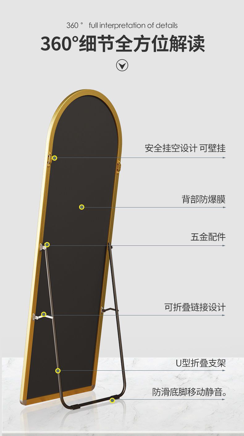 | Modelo | Espejo de cuerpo completo de arco de piso |