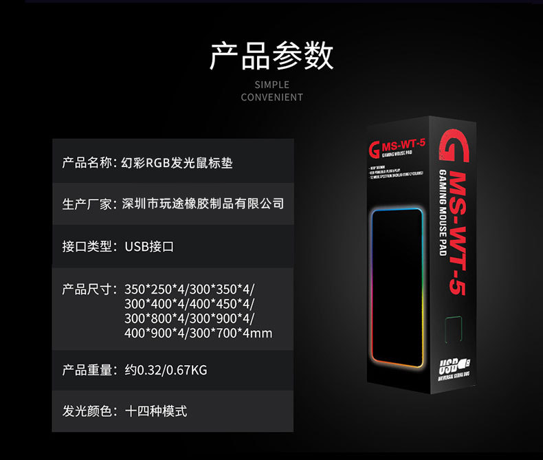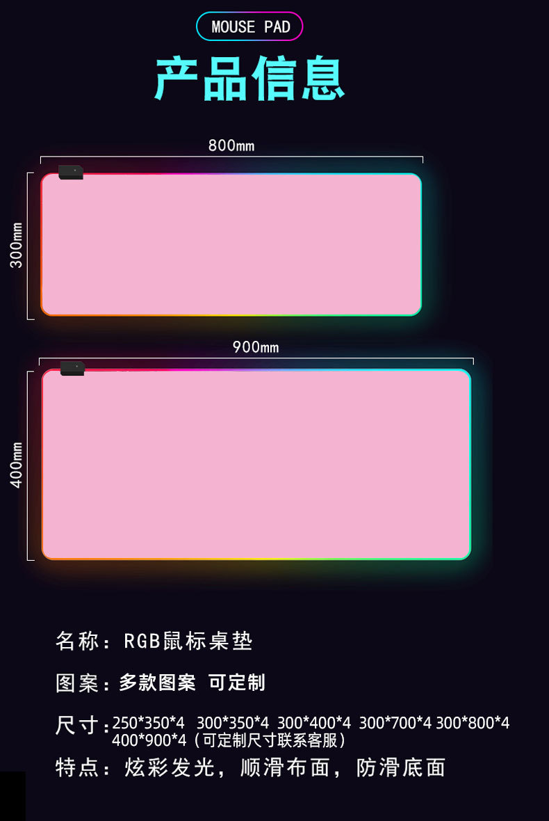 Nueva alfombrilla de ratón luminosa e-sports entrega de una sola pieza LED de luz colorida computadora mouse pad memoria de apagado RGB al por mayor
