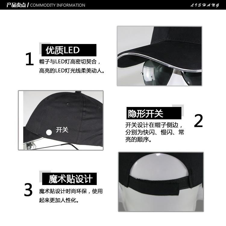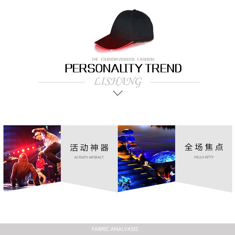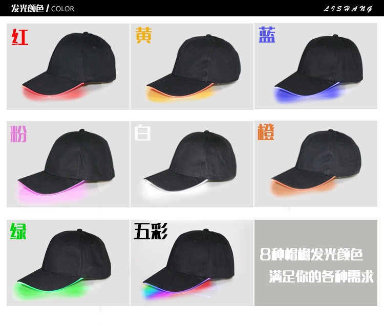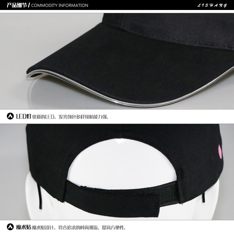 Amazon suministro LED sombrero luminoso sombrero luminoso nocturno sombrero sombrero al aire libre sombrero de estilo de béisbol al por mayor
