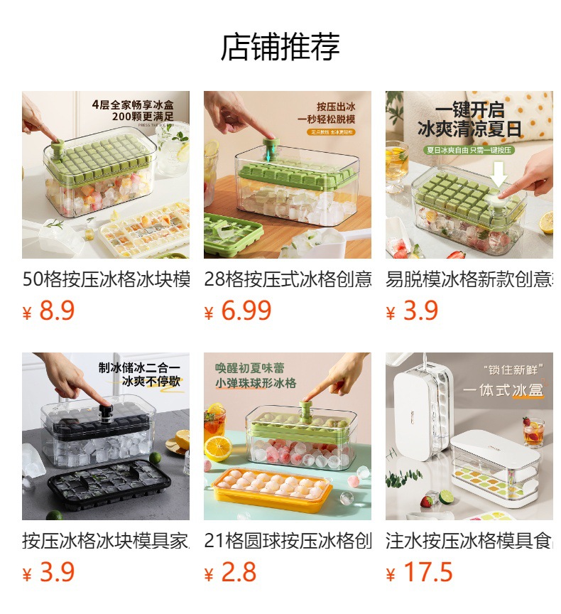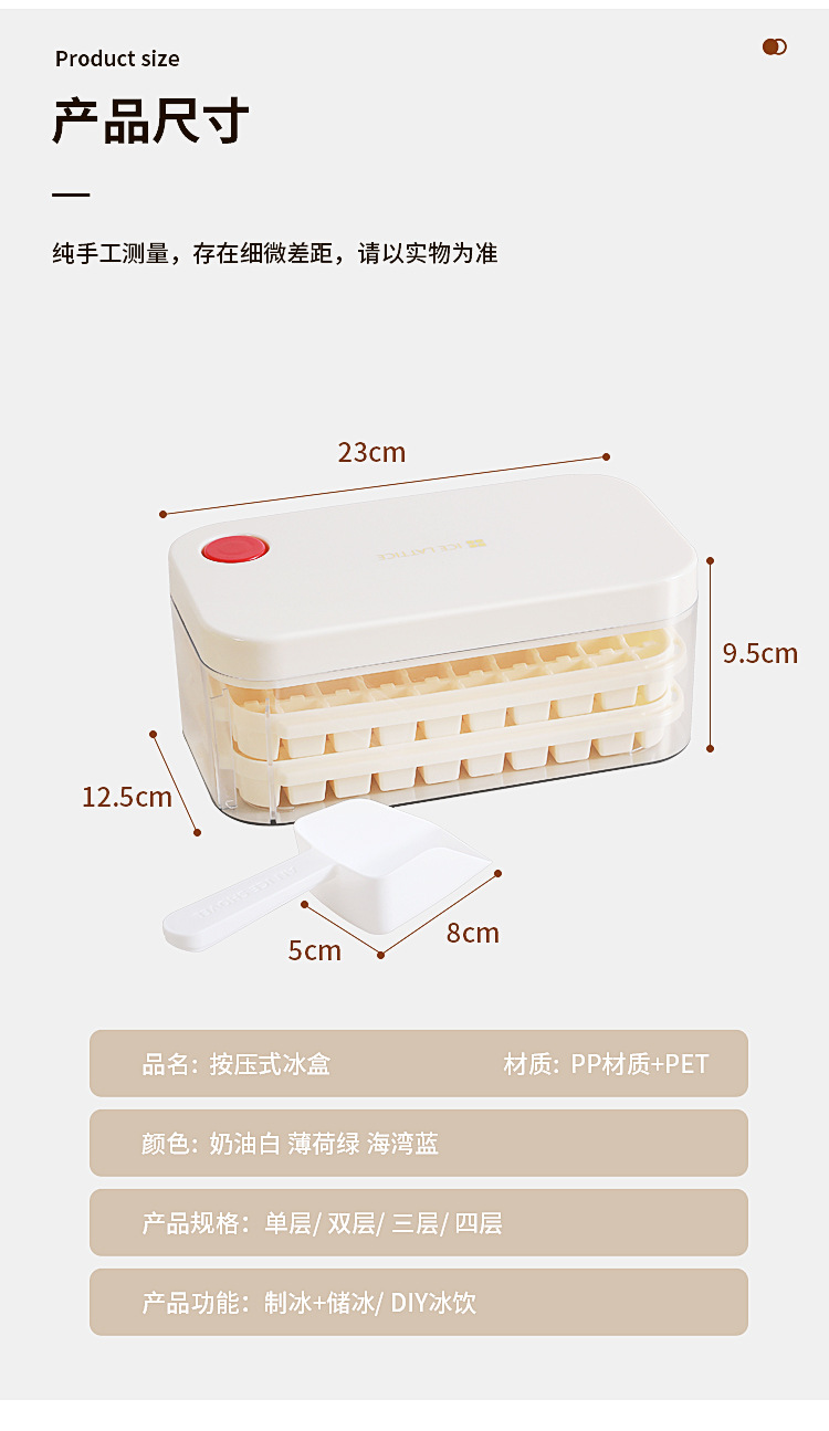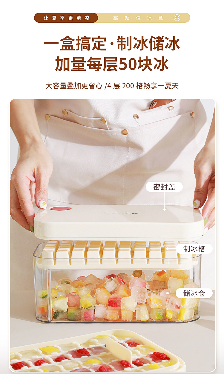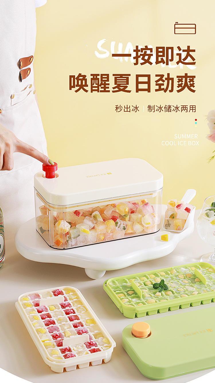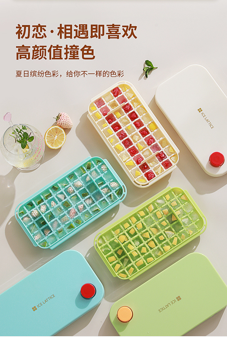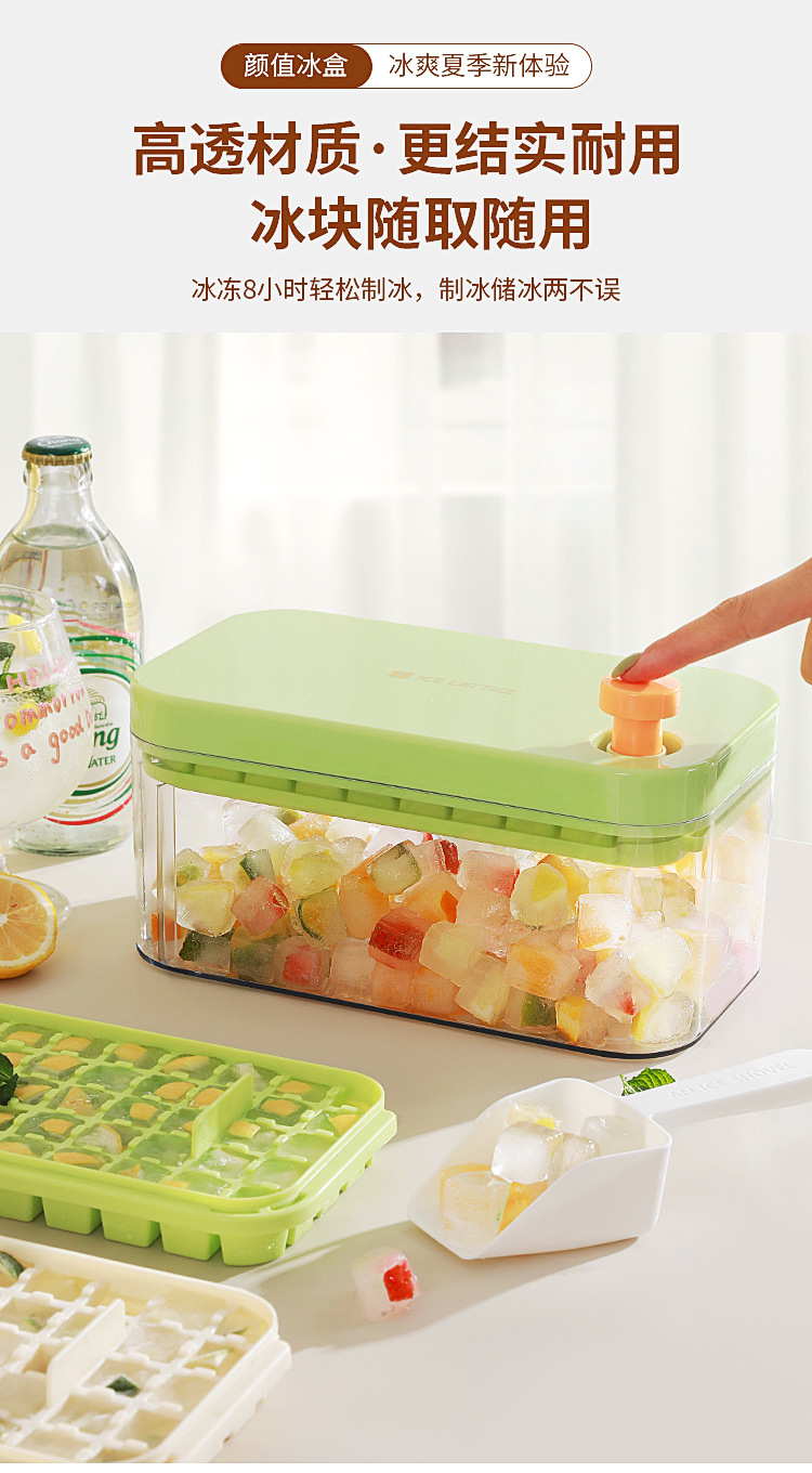 Presione la rejilla de hielo, cubitos de hielo, molde casero, fabricación de hielo, almacenamiento de gran capacidad, refrigerador doméstico de grado alimenticio con tapa