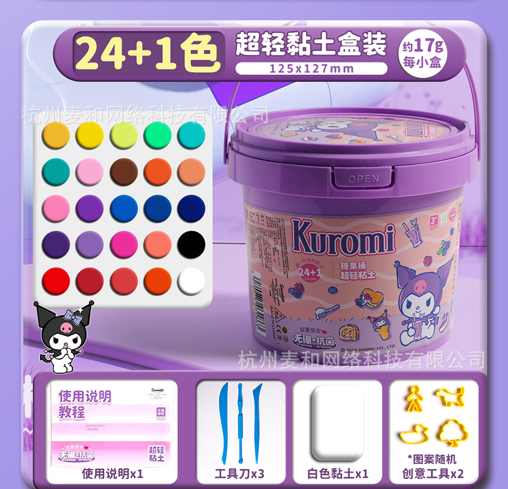 Sanrio genuino Kulomi arcilla ultra ligera 36 colores barril de goma de barril espacio barro de color DIY barro para niños hechos a mano