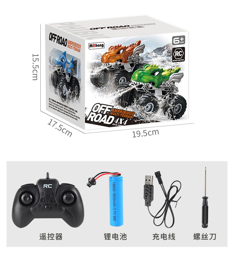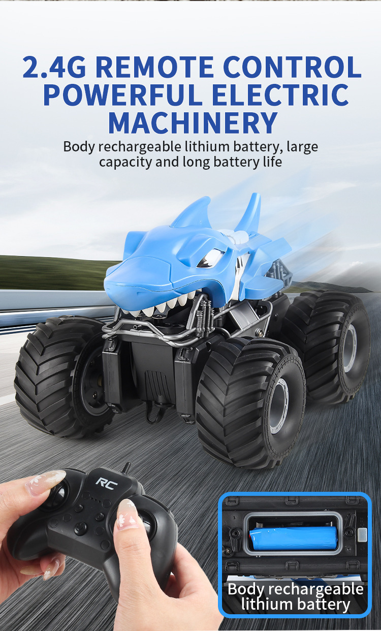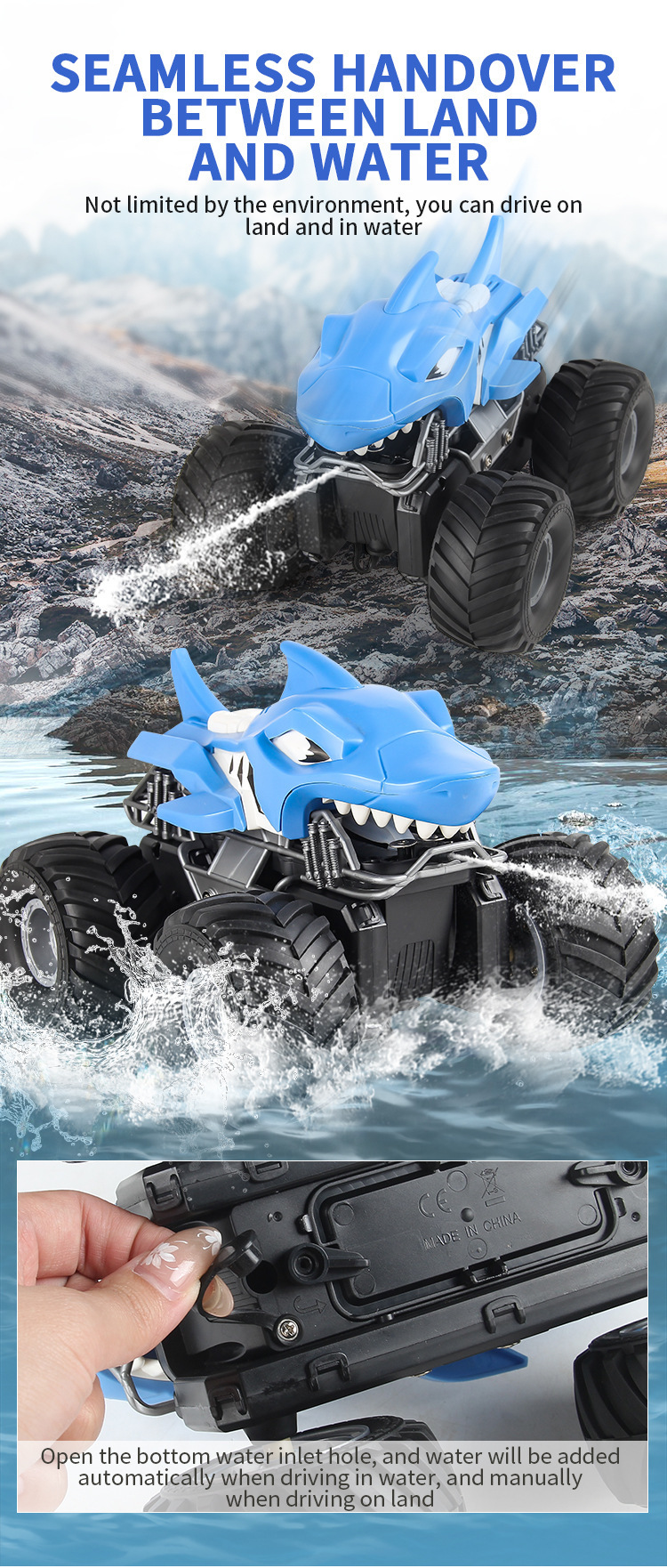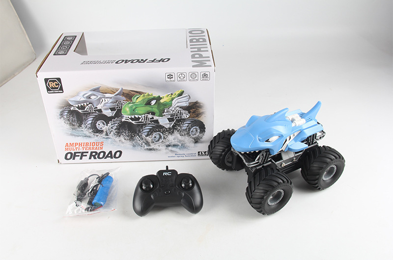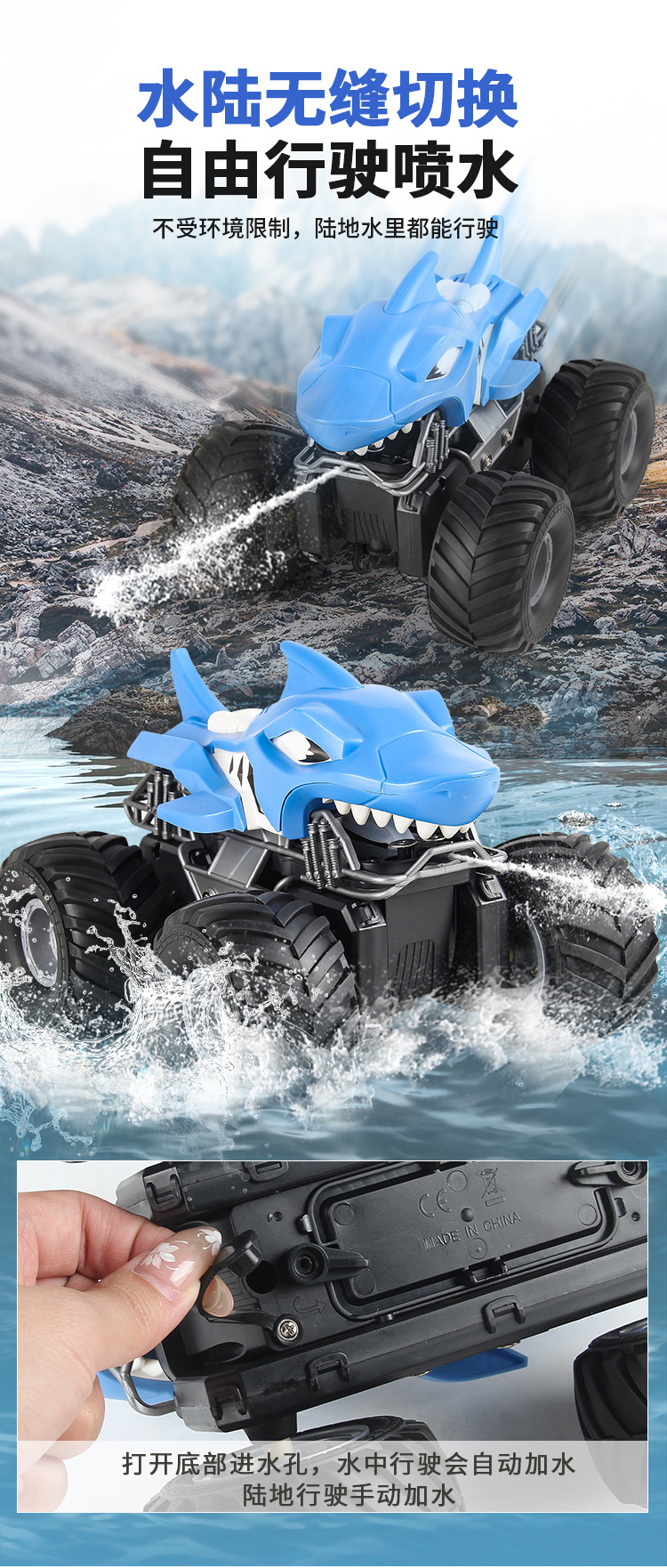 Nuevo producto Dinosaur autocebante chorro de agua coche de control remoto tiburón giratorio de 360 ° anfibio coche de acrobacias coche de juguete para niños