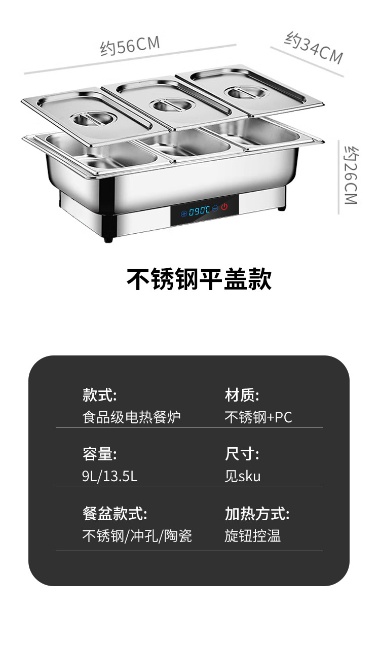 Estufa de buffet de restaurante inteligente comercial Estufa de buffet de calefacción eléctrica de acero inoxidable Estufa de comedor de aislamiento del hotel Estufa de sopa de desayuno