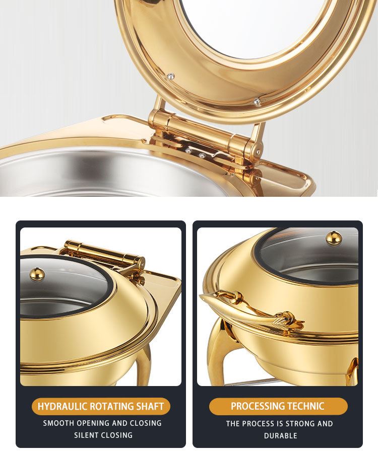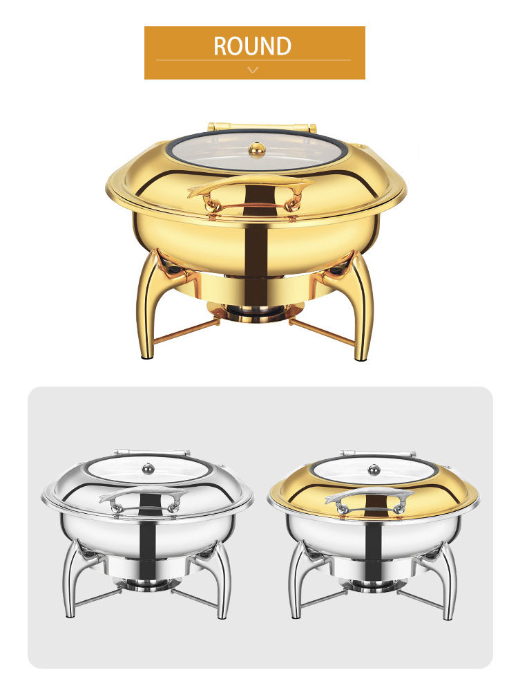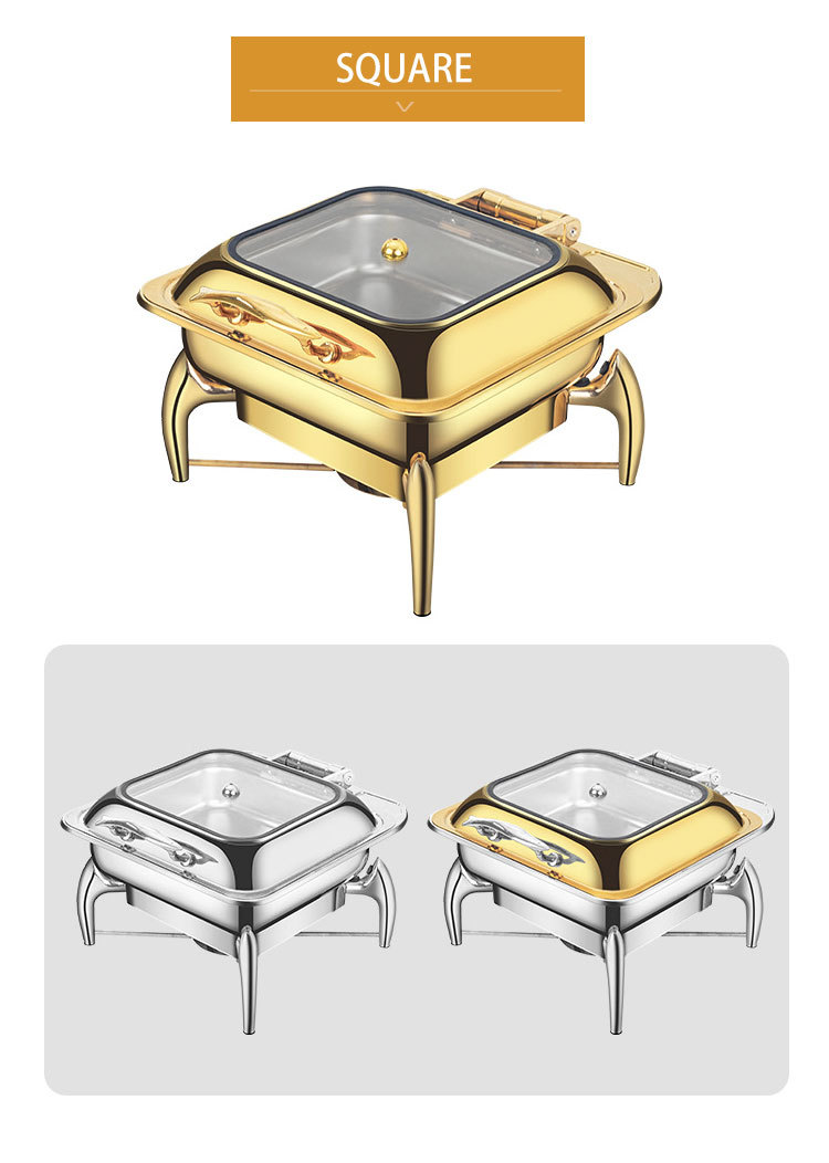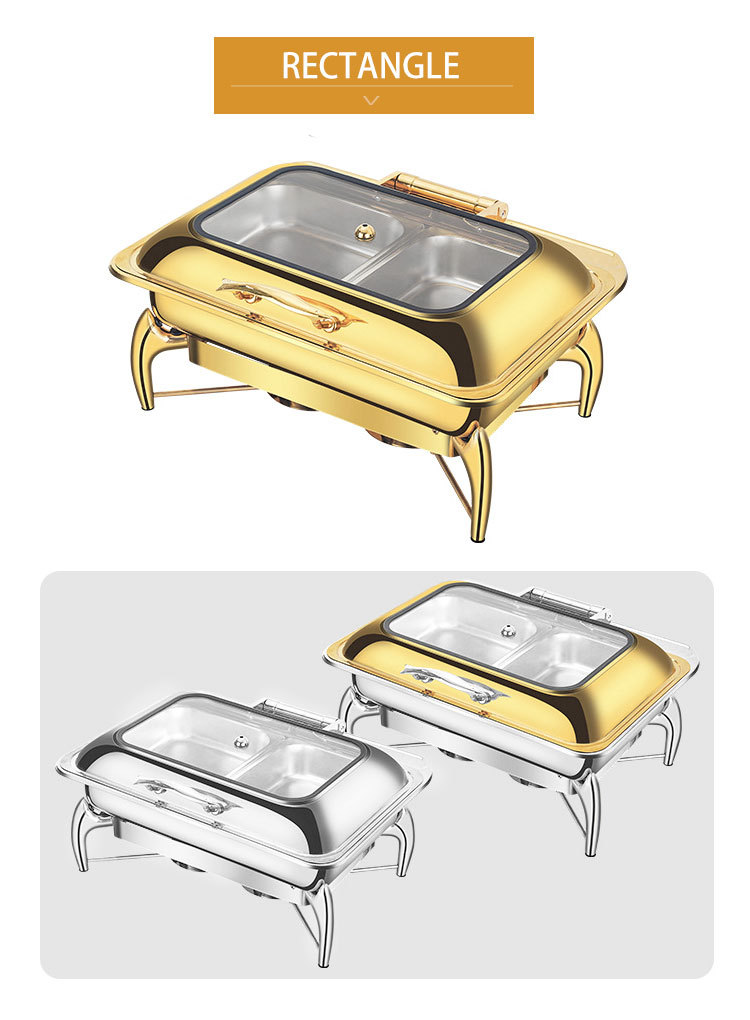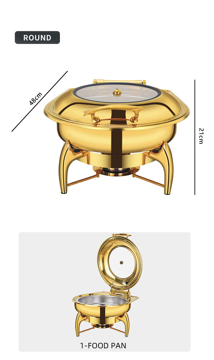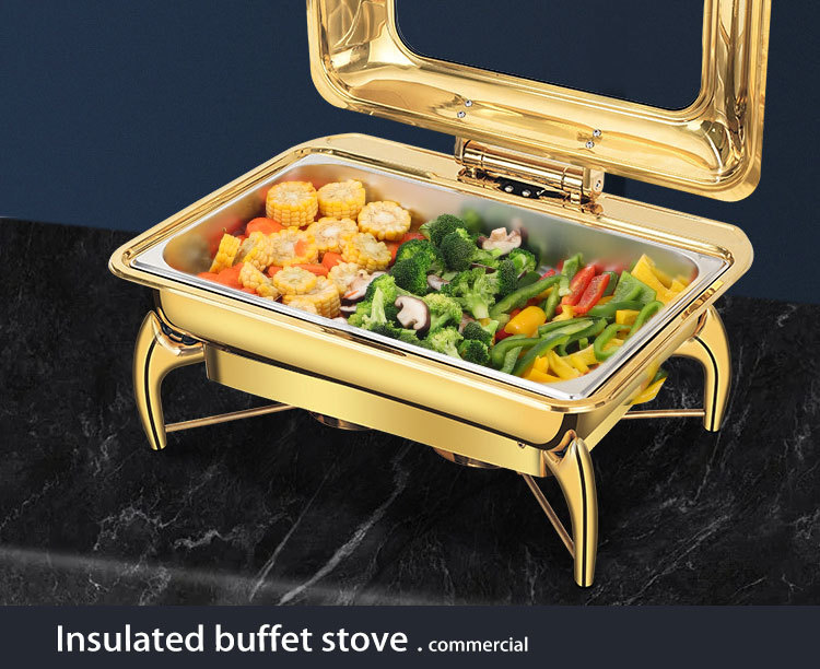 horno de buffet de acero inoxidable transfronterizo horno de buffet de hotel aislante de oro horno de calor eléctrico de alcohol dorado