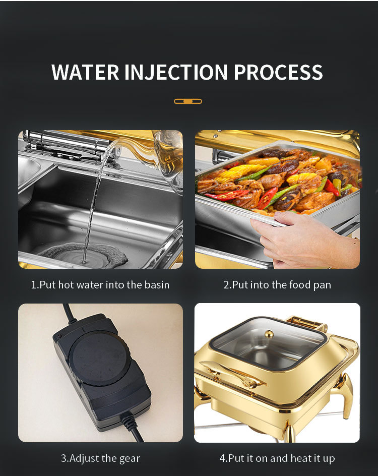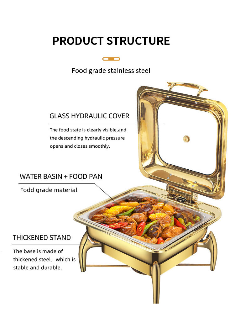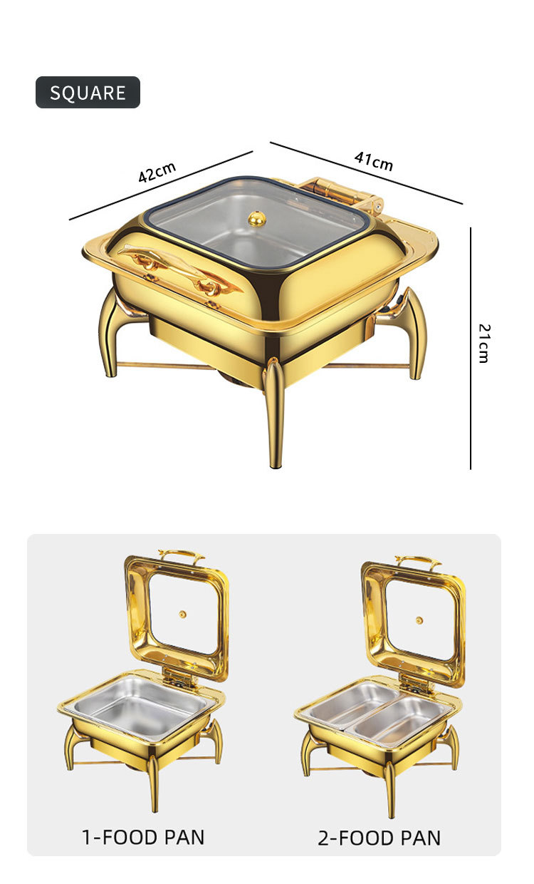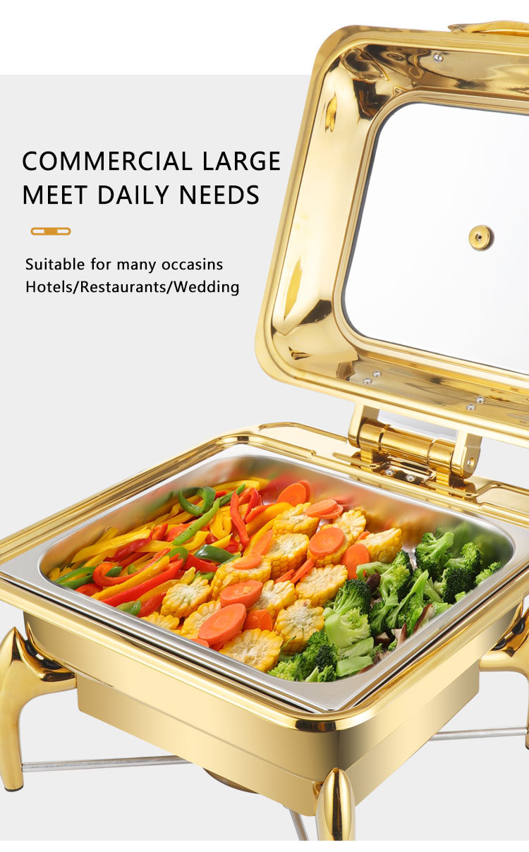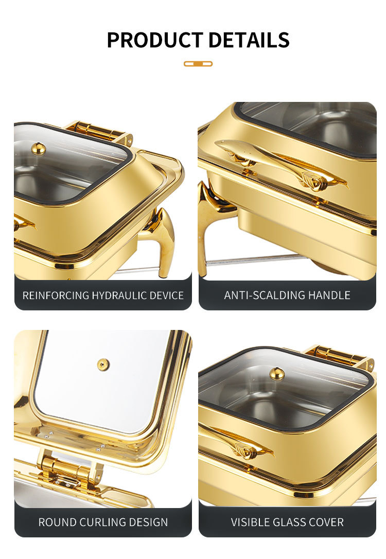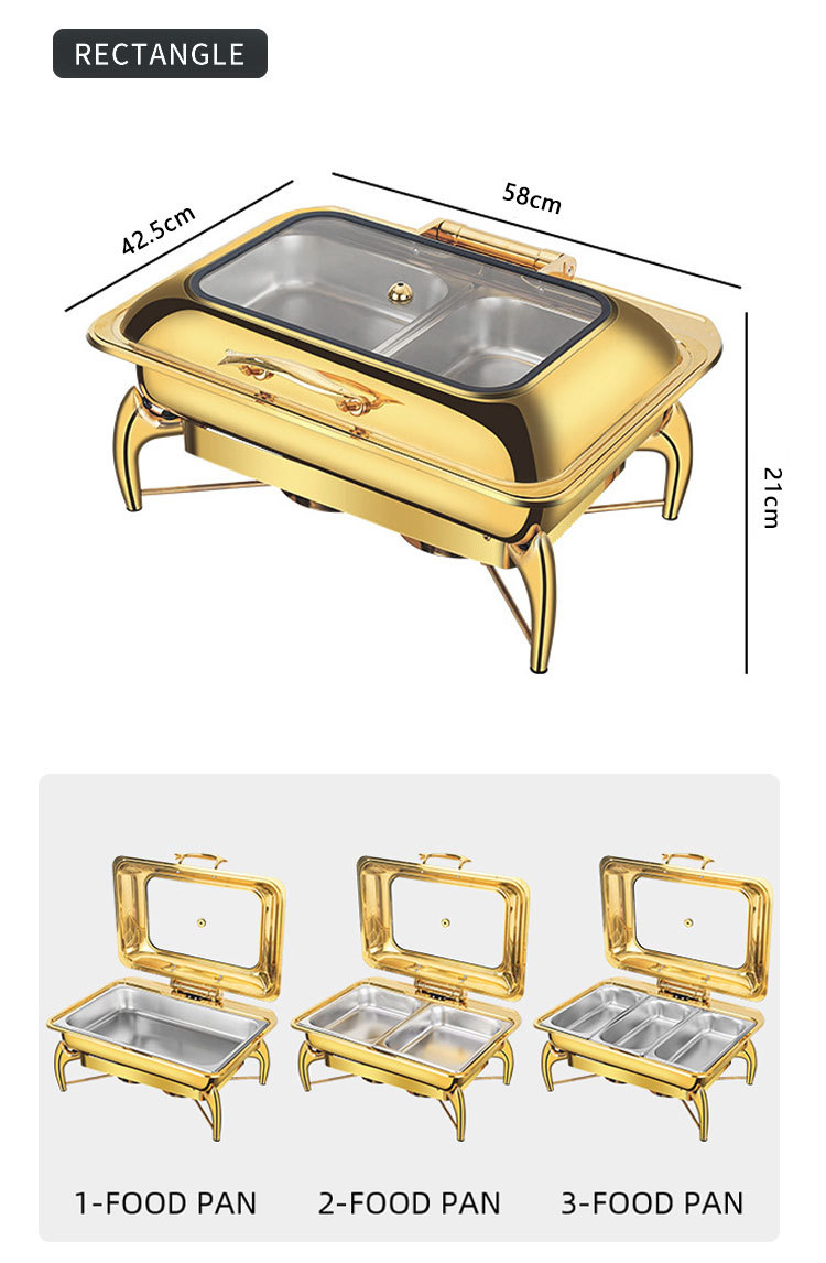 horno de buffet de acero inoxidable transfronterizo horno de buffet de hotel aislante de oro horno de calor eléctrico de alcohol dorado