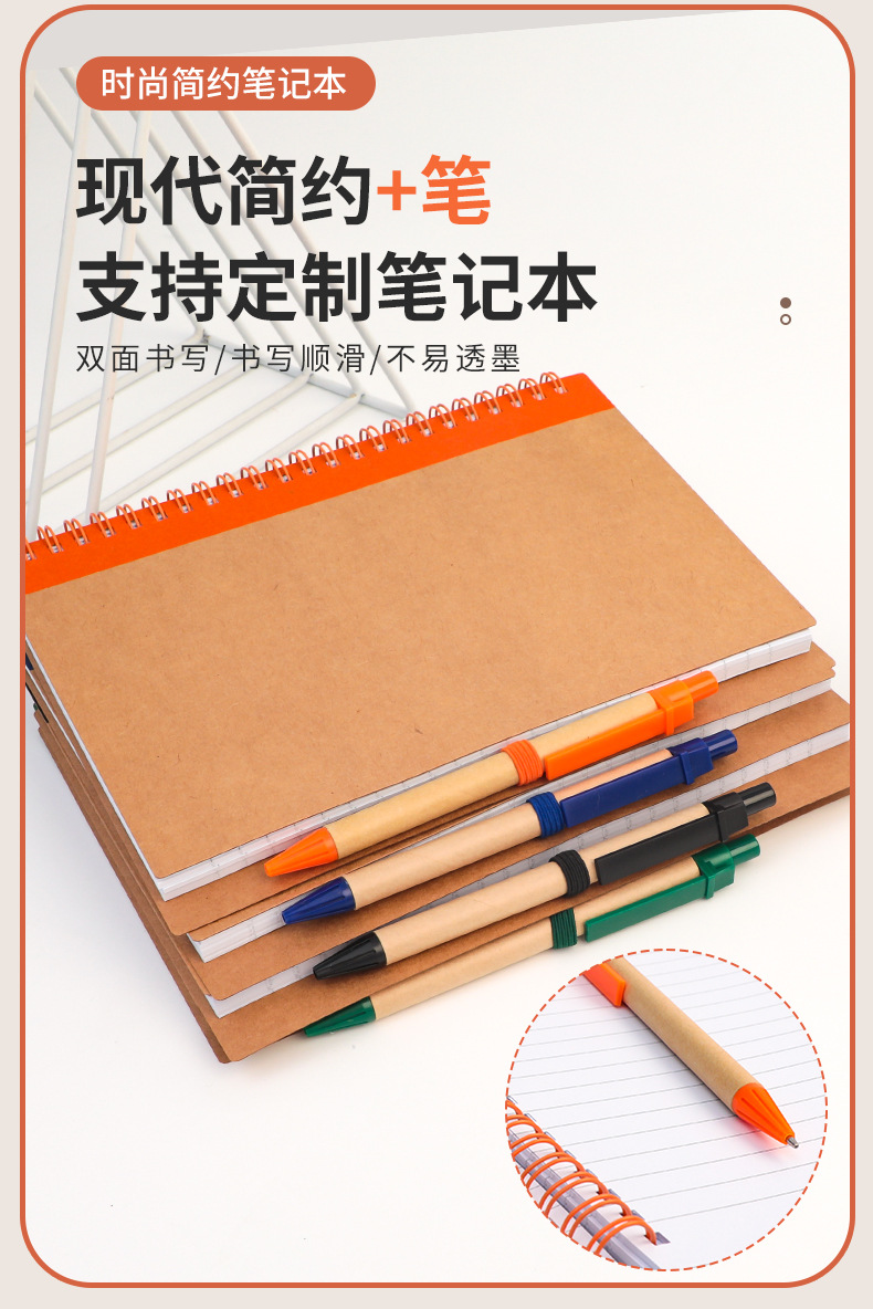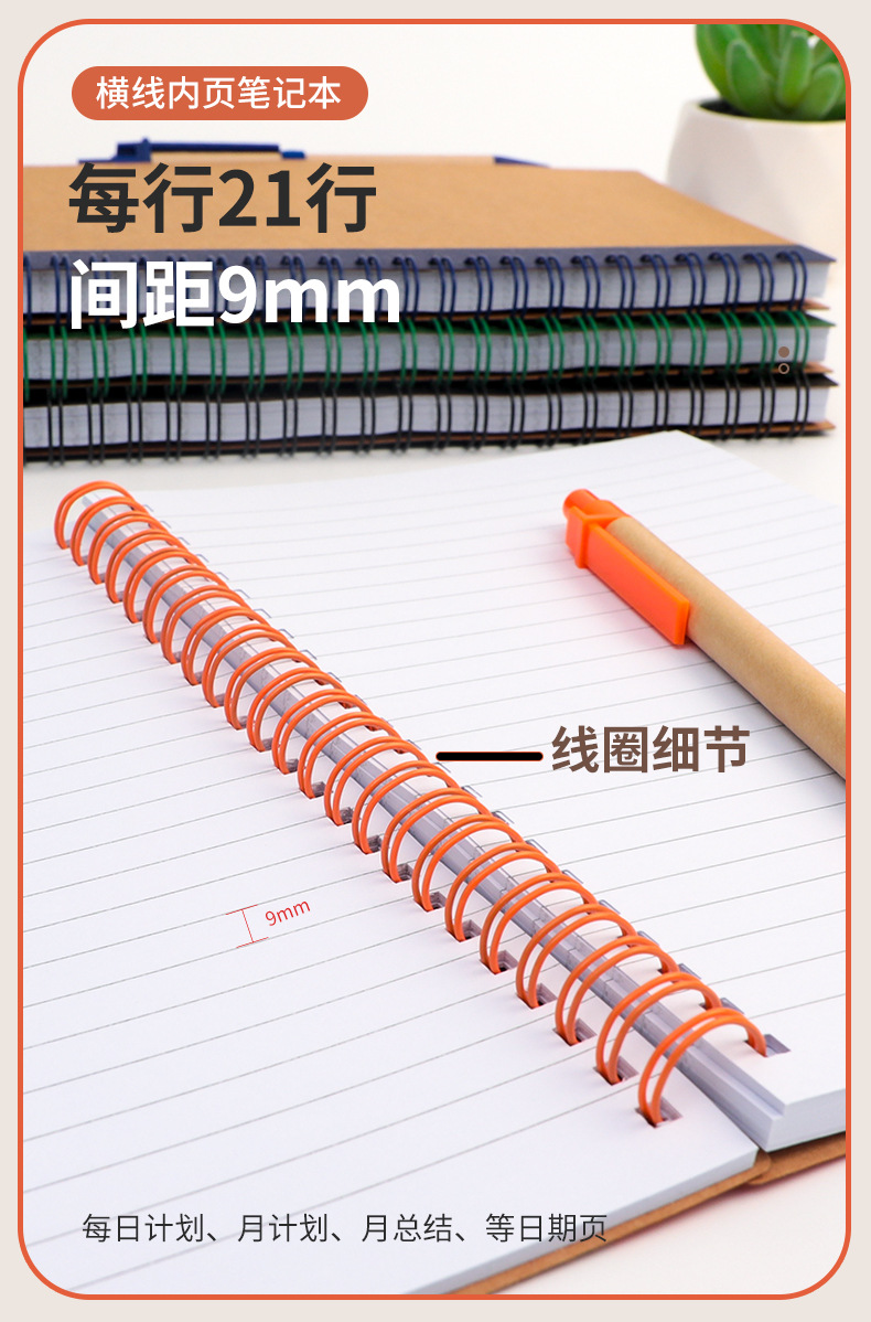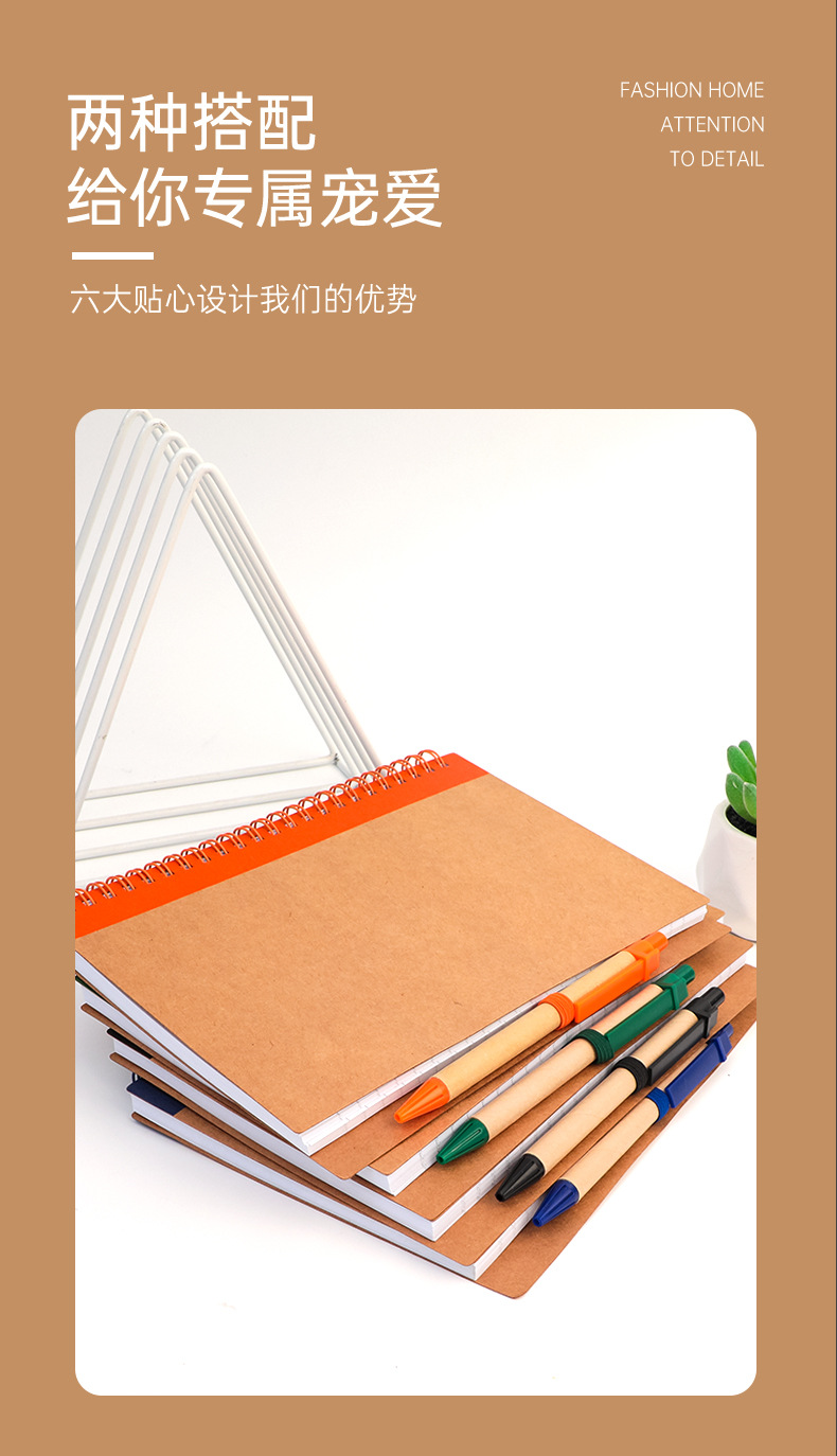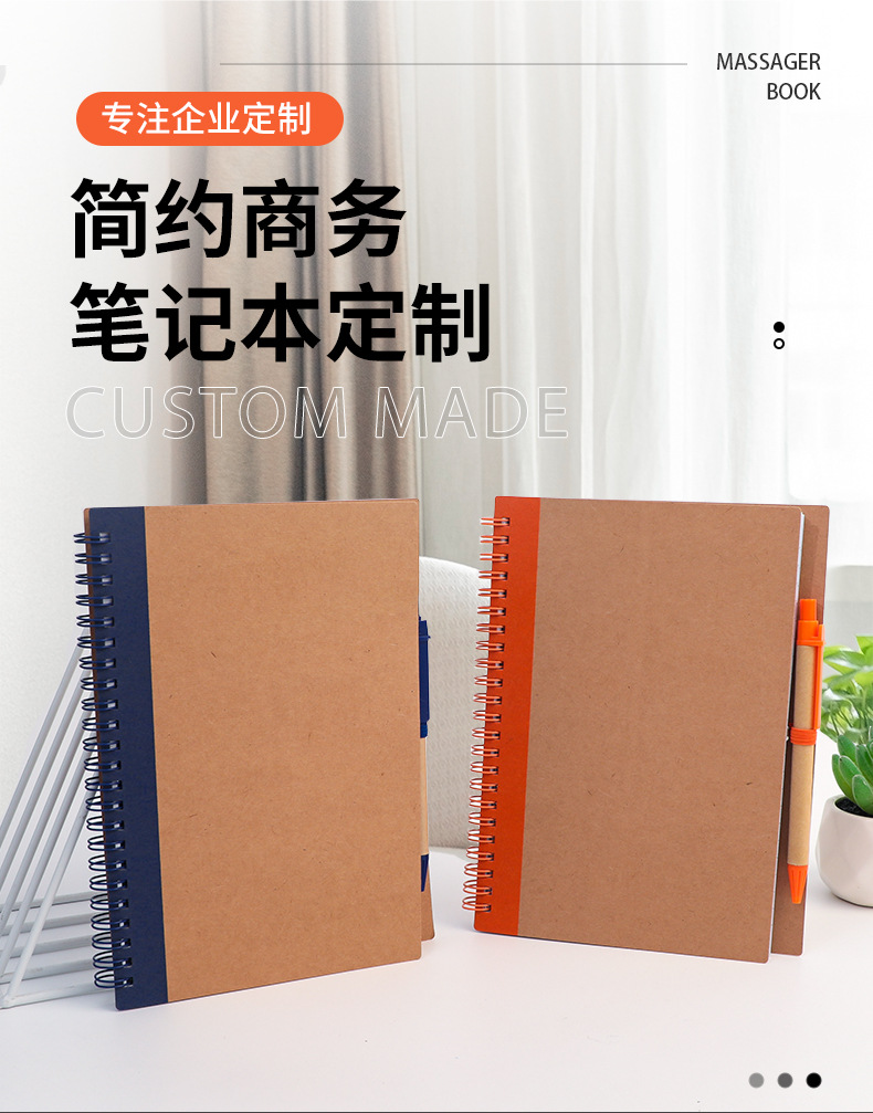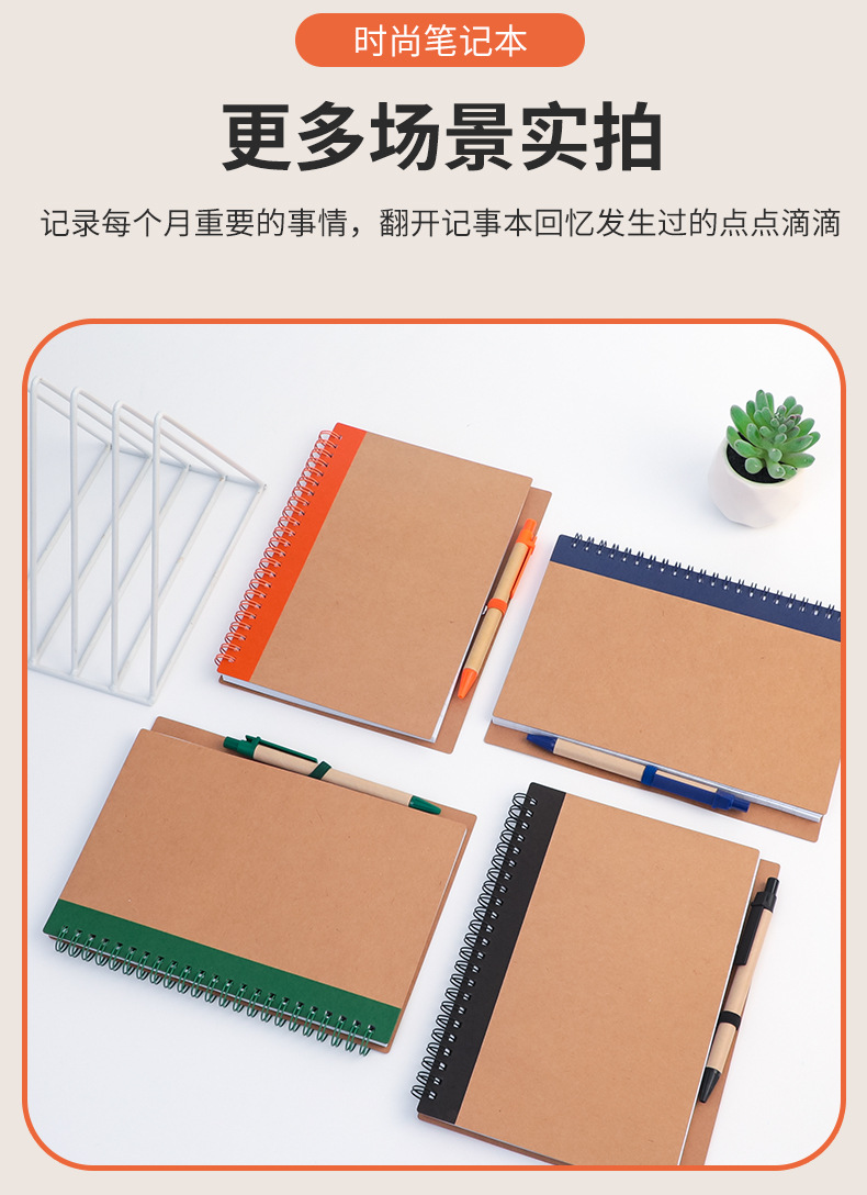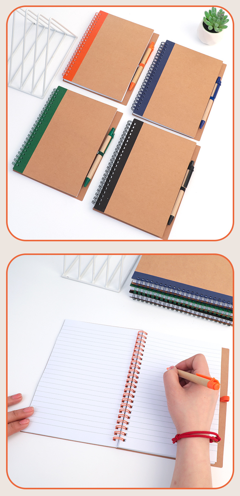 Cuaderno espiral de papel kraft transfronterizo para oficina y negocios, bloc de notas creativo portátil para notas rápidas.
