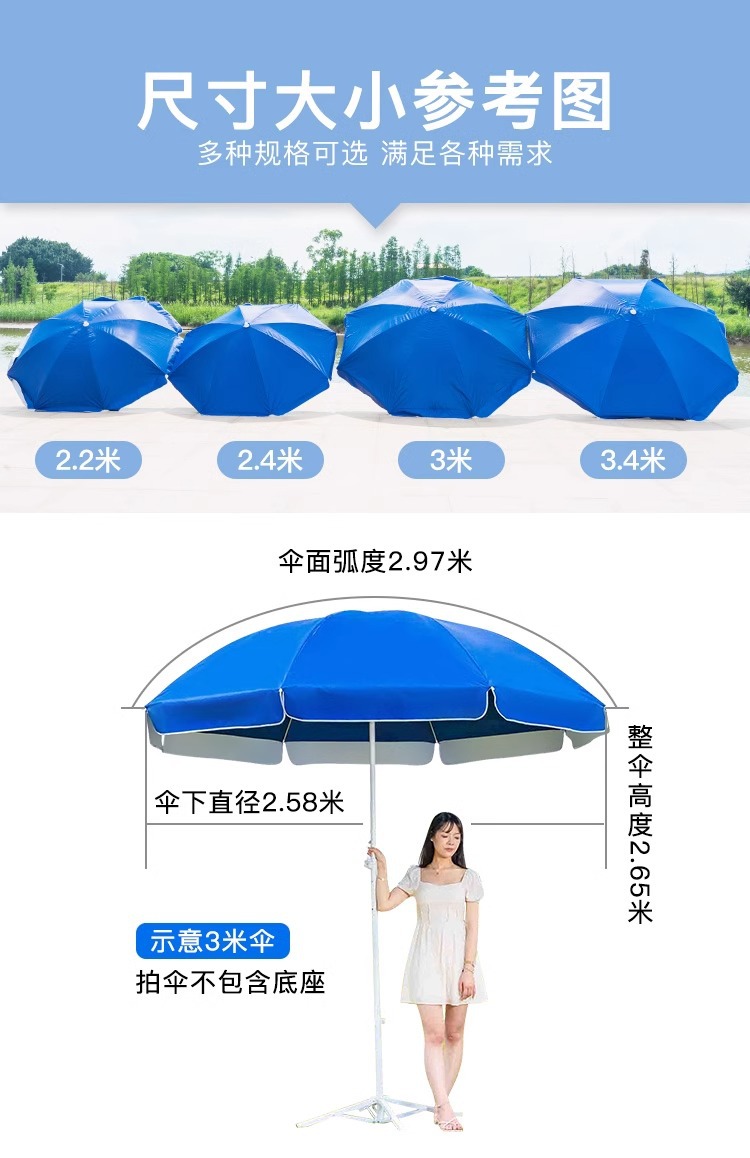 Paraguas de fibra de 3 metros, hueso azul y grueso
