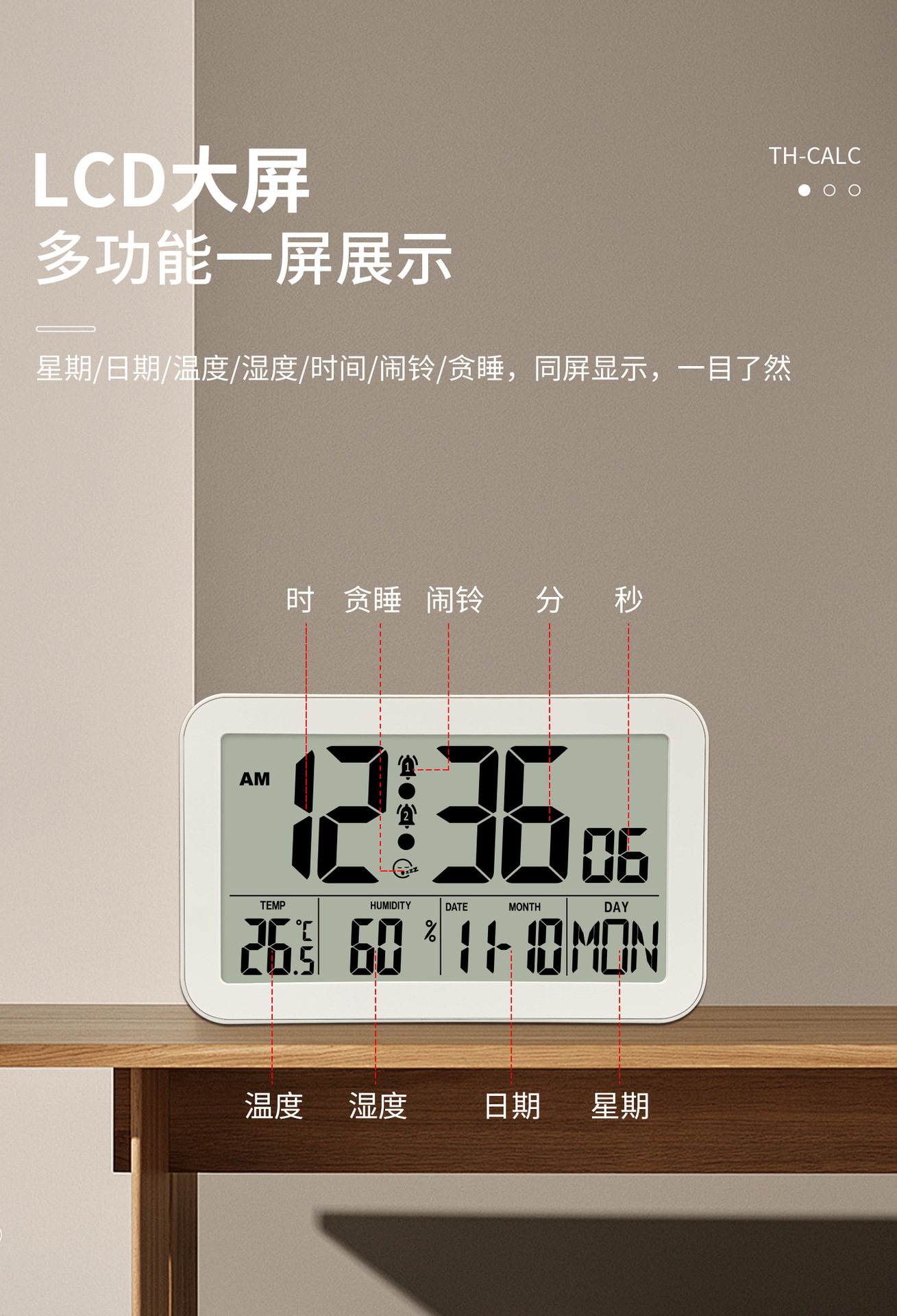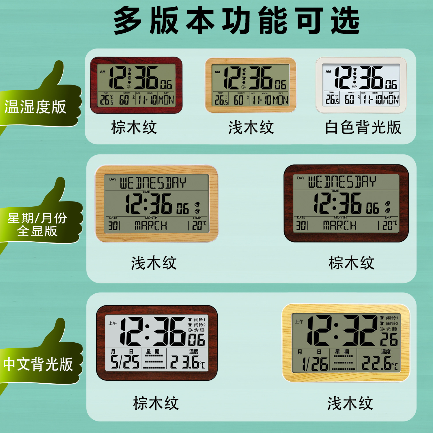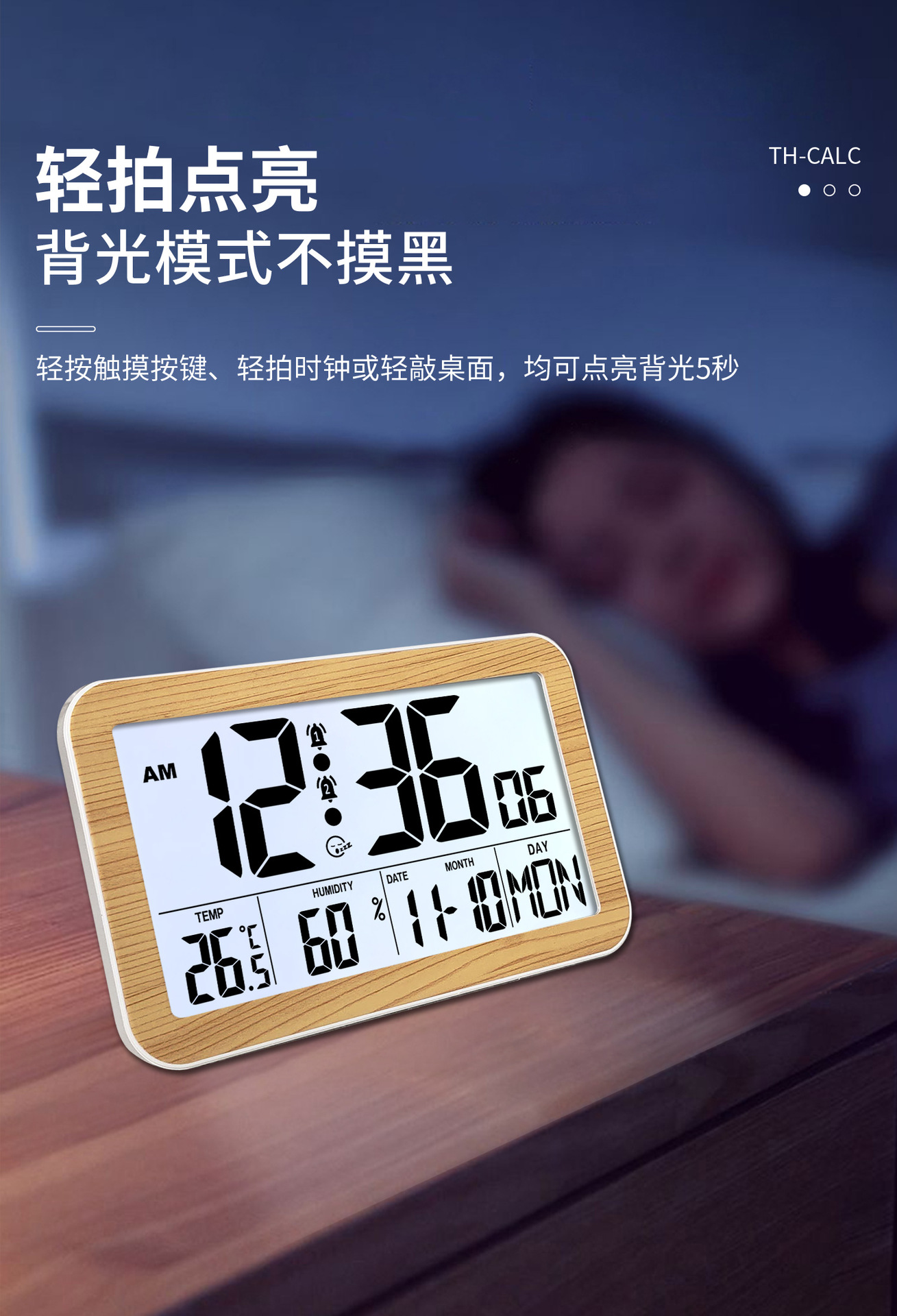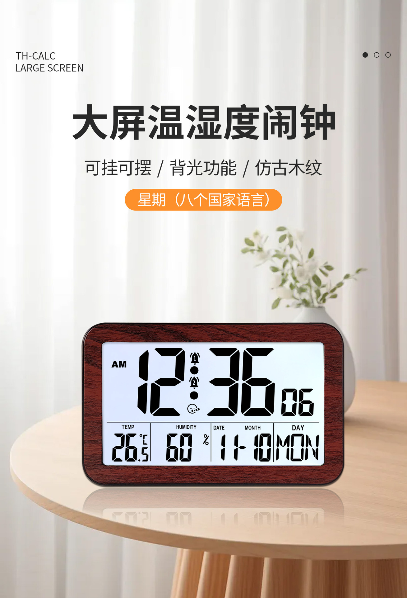 Sala de estar y dormitorio LCD despertador digital HD pantalla de temperatura y humedad multifuncional calendario perpetuo reloj de pared