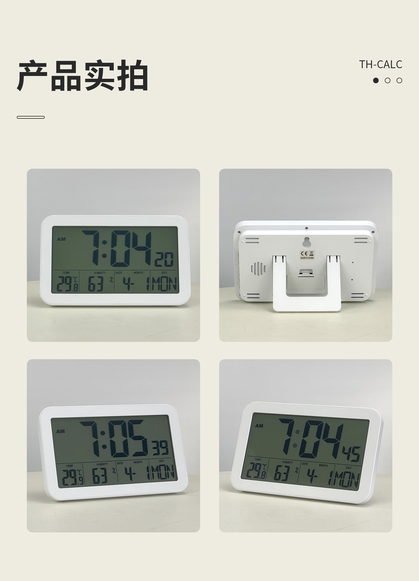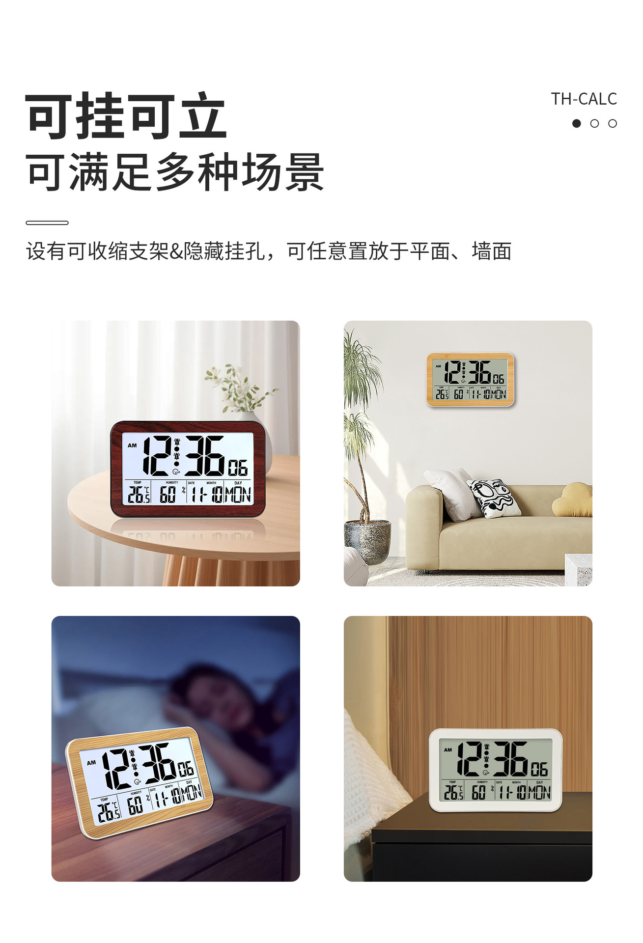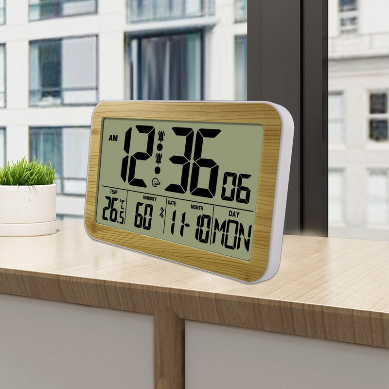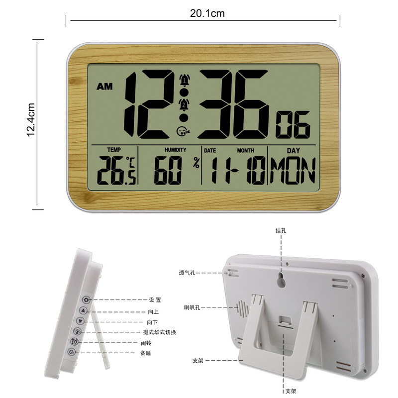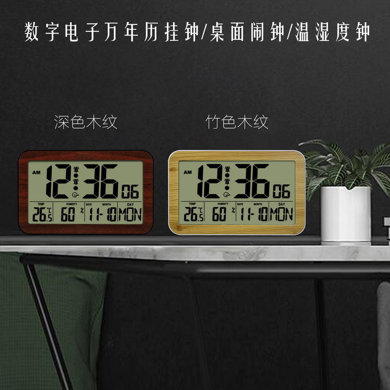 Sala de estar y dormitorio LCD despertador digital HD pantalla de temperatura y humedad multifuncional calendario perpetuo reloj de pared