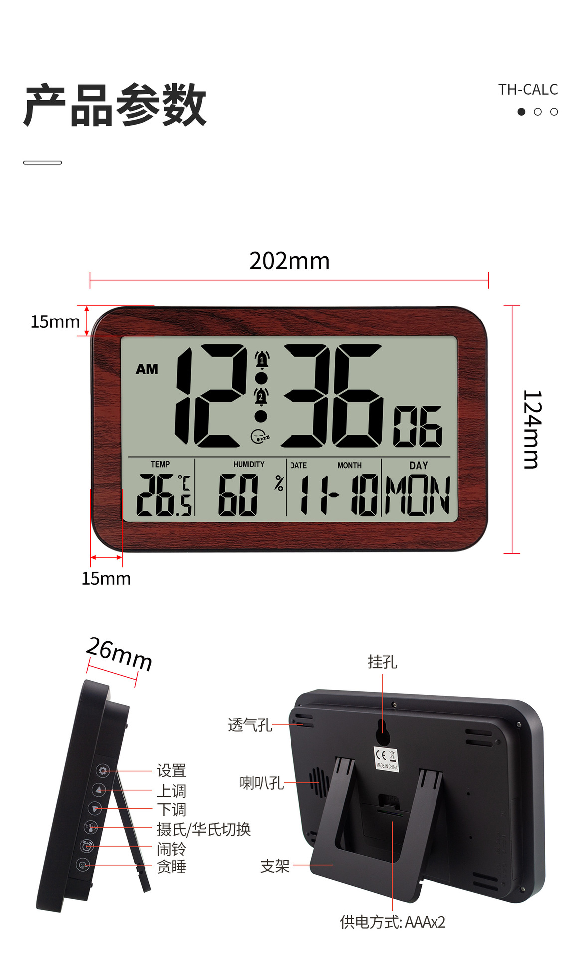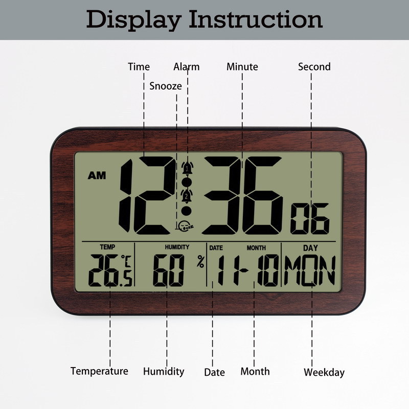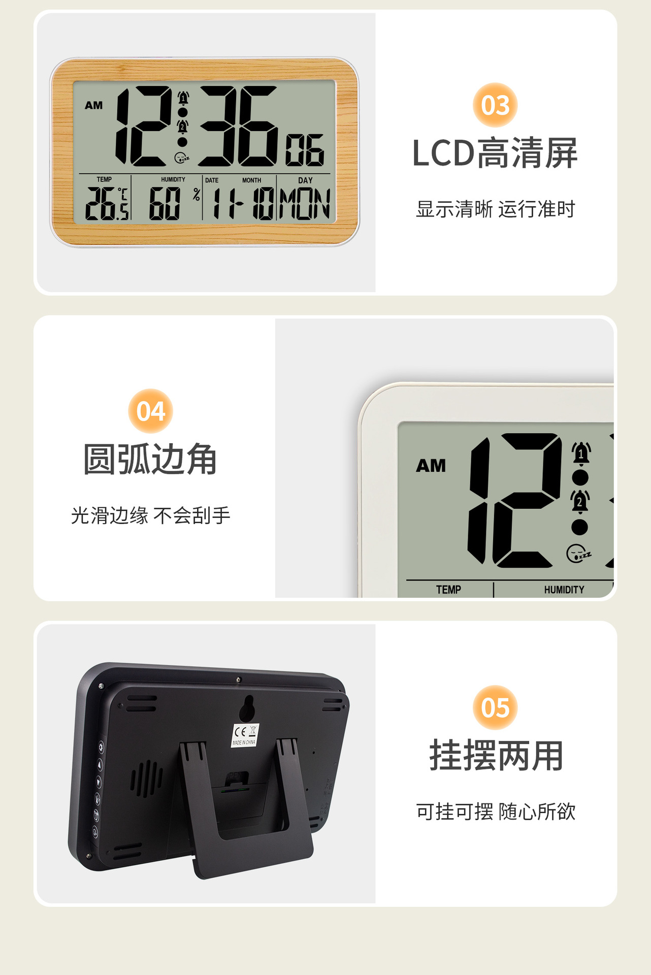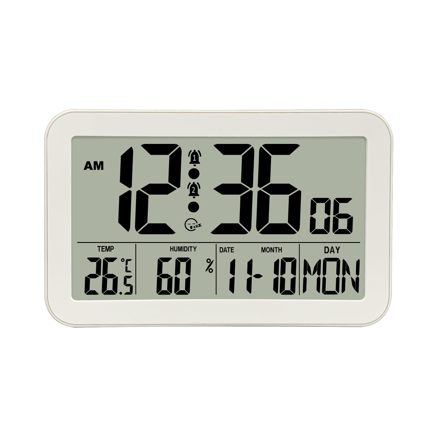 Sala de estar y dormitorio LCD despertador digital HD pantalla de temperatura y humedad multifuncional calendario perpetuo reloj de pared