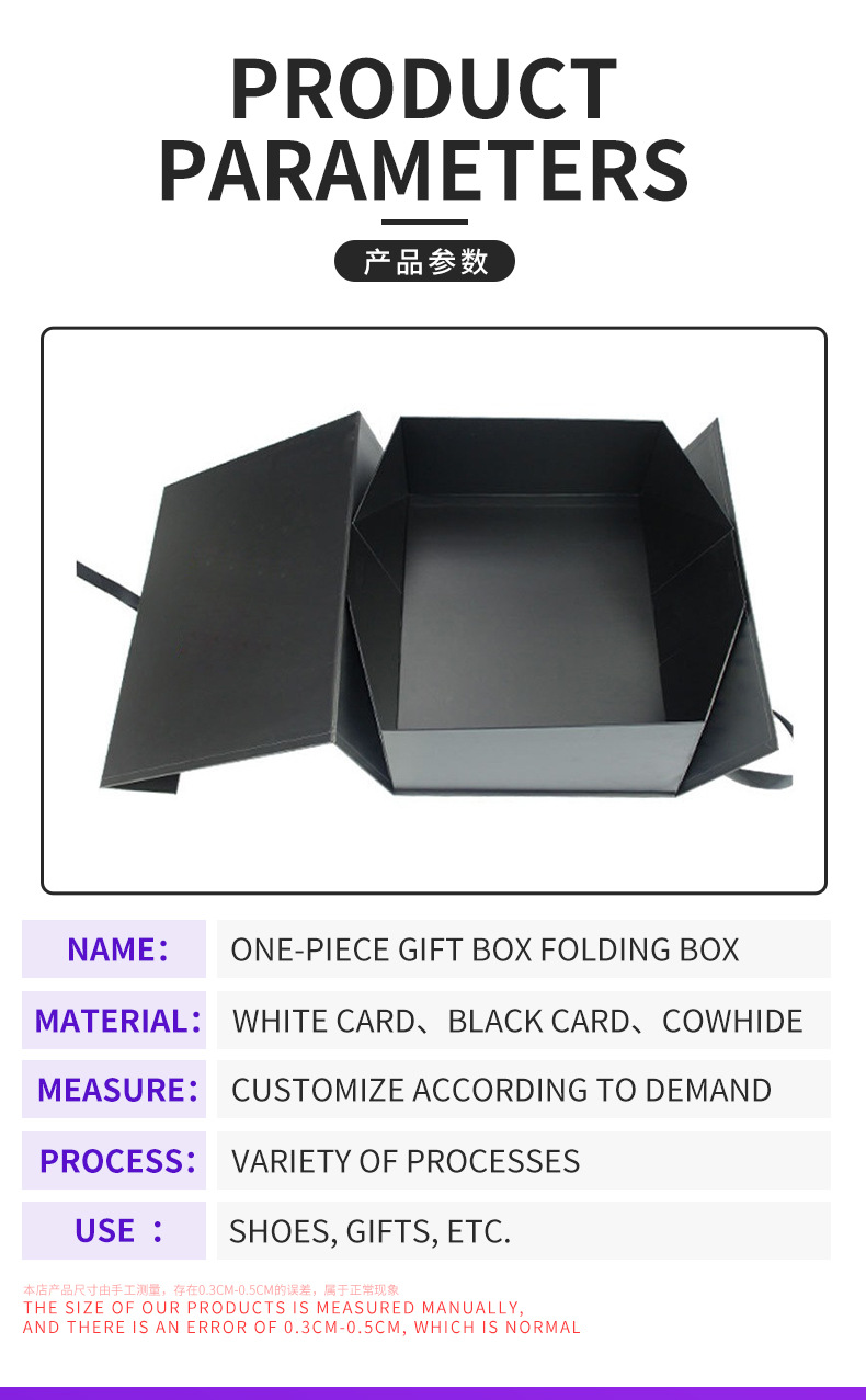 Caja plegable de una pieza transfronteriza caja de regalo de mano de vacaciones de bronceado negro con tapa magnética plegable caja vacía con logotipo impreso
