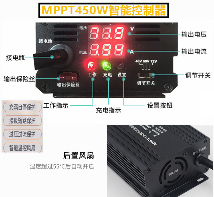 48V60V72V vehículo eléctrico de tres ruedas vehículo eléctrico de cuatro ruedas sistema de placa de carga de impulso de placa de generación de energía solar