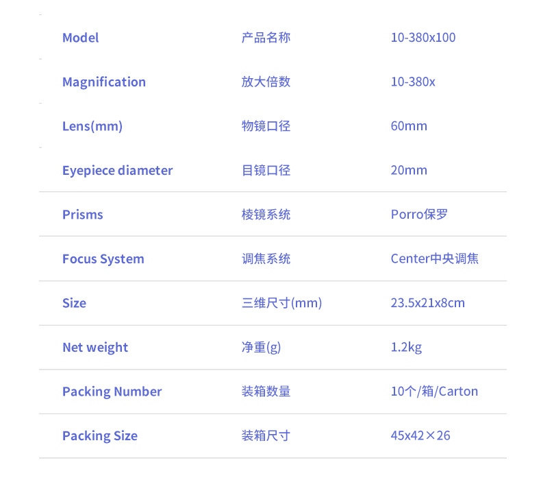 Fábrica al por mayor 10-380X100 binoculares para viajes al aire libre Telescopio de zoom de concierto HD de alta potencia