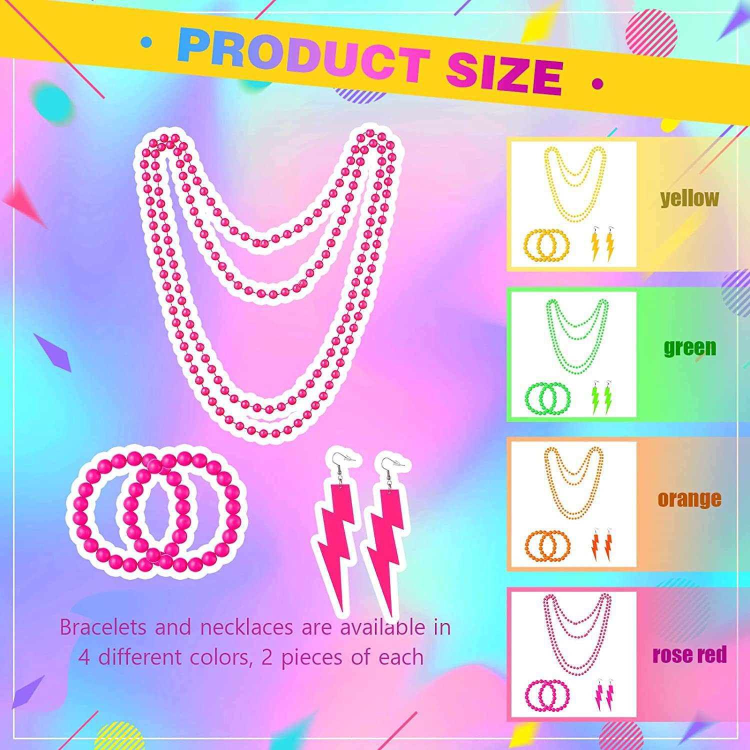 | Color | Collar, pulsera, capucha, gafas, falda de gasa (2 - 8 años, 3 capas de 3 metros), falda de gasa 2 - 8 años (3 capas de 1,5 metros), traje (específico a la combinación), pendientes |