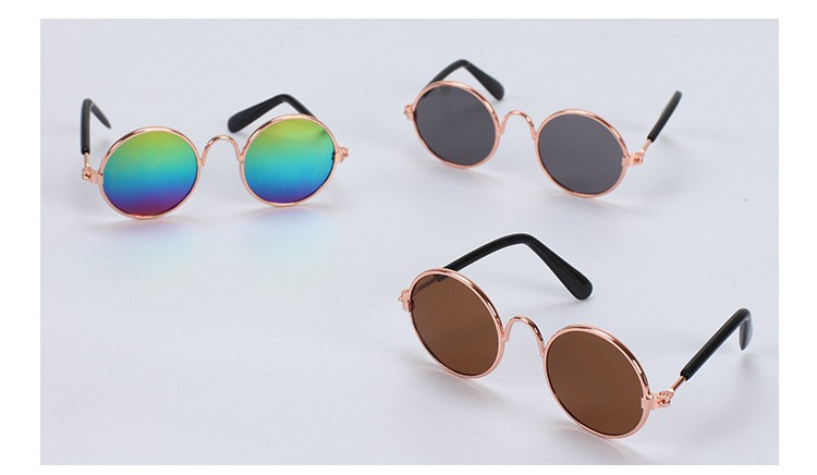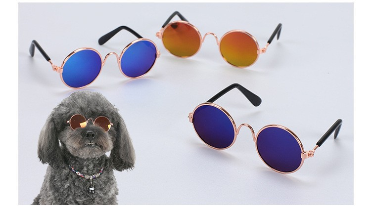Gatas de gato para mascotas retrógradas para jugar cool perros gafas de fotos accesorios gatos perros extraños gafas de sol joyas de marco de oro gafas