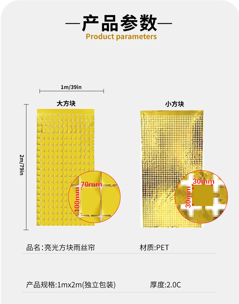 Cuadrado cuadrado cortina de seda de lluvia decoración de la pared de fondo 1 * 2m decoración brillante fábrica al por mayor comercio exterior
