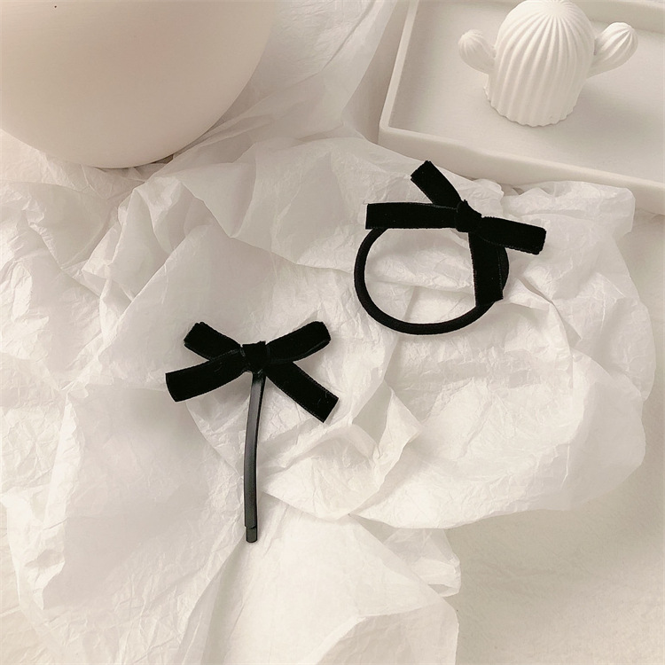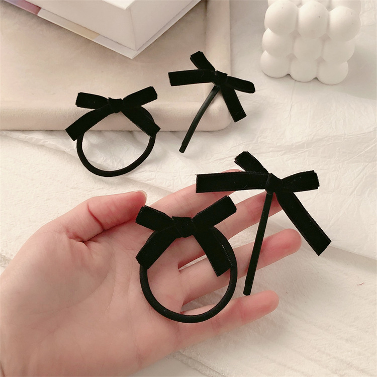 Anillo de cabello de arco de seda de banda de goma de cabello de cabello de alta calidad de cabello de cola de cabello elástica negra de alta gama
