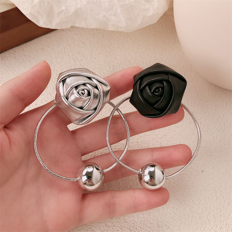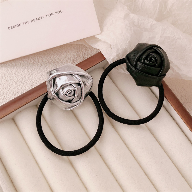 Cuerpo de corteza plateada rosa anillo de cabello cuerdas de cabello blogger red con doble cola de caballo estereoscópica correa de correa de cabello adorno de cabello