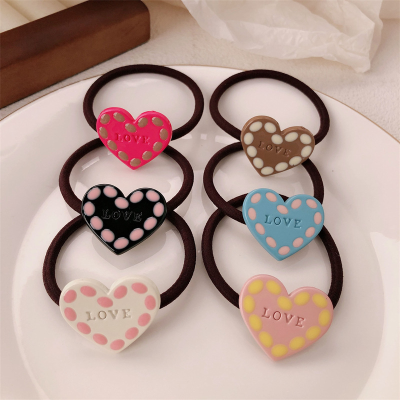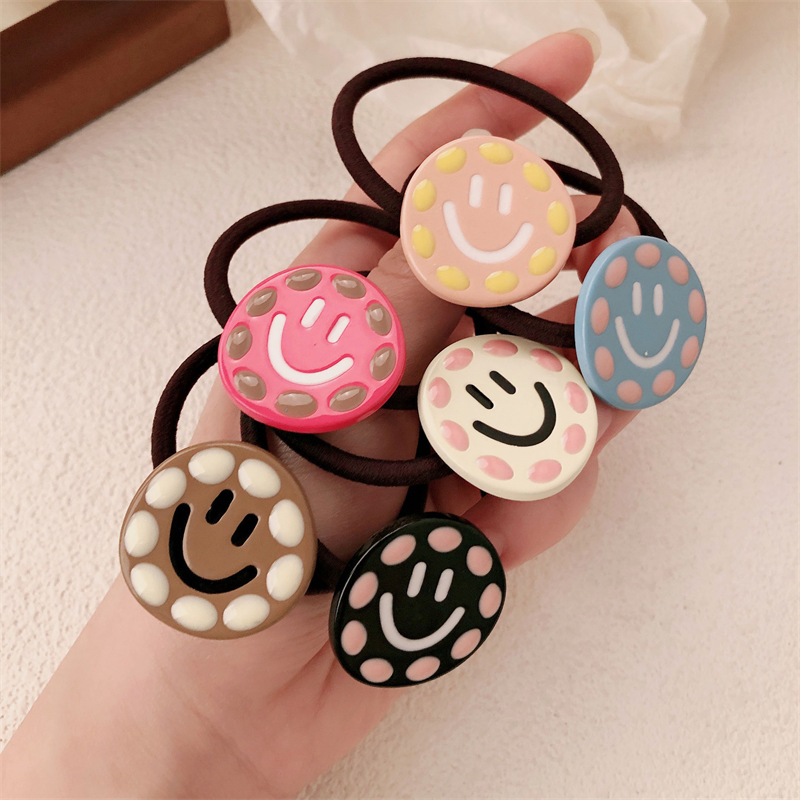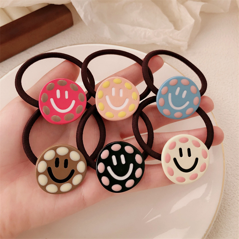 Corea del Sur color contrastante amor sonrisa banda de base de alta elasticidad simple anillo de cabello de alta sensación de cabello atado cuerdas de cabello adornamiento para el cabello