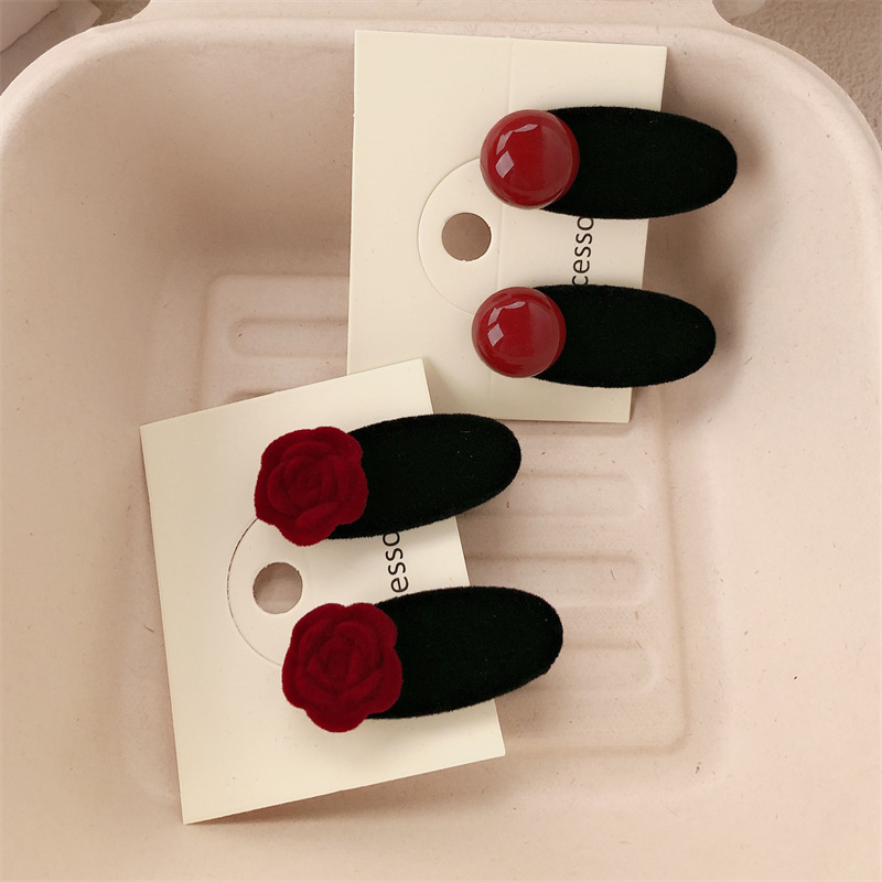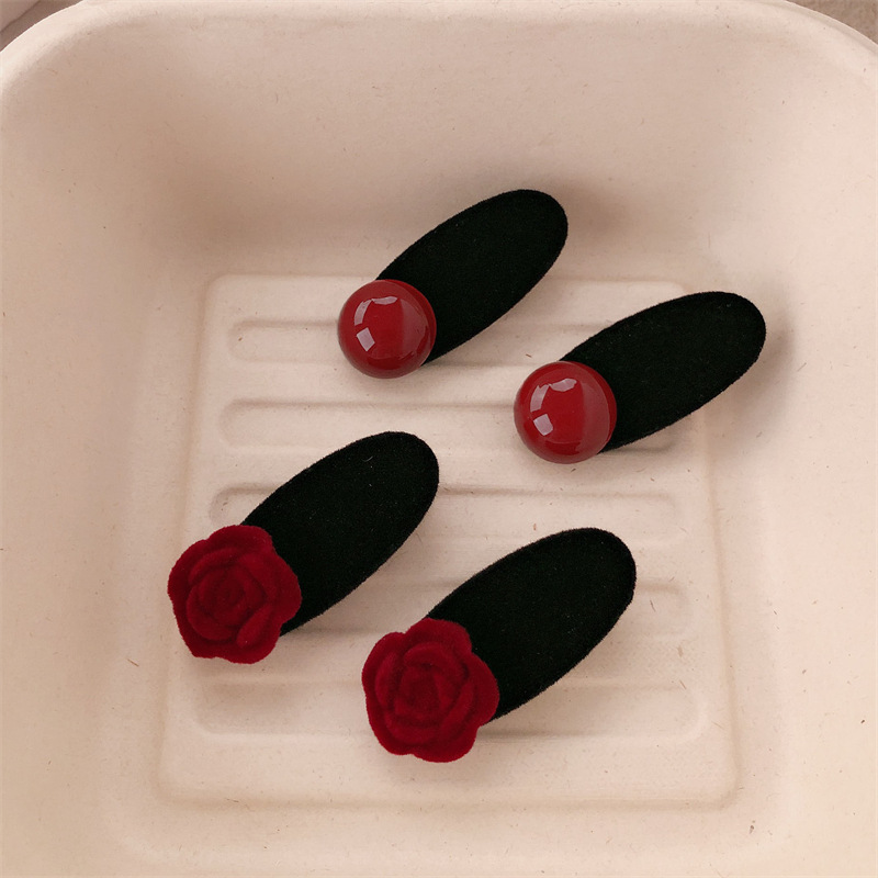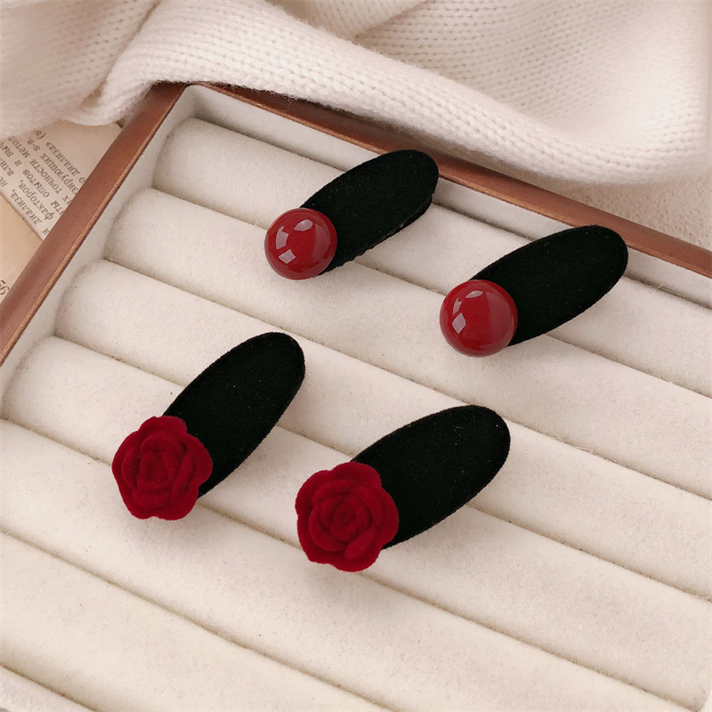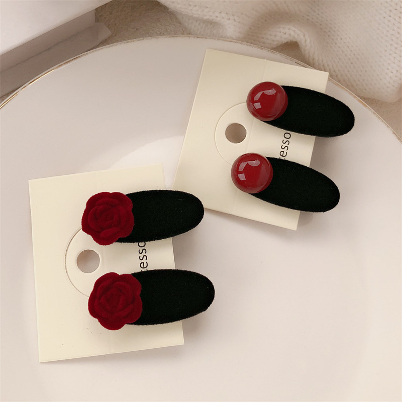 Clip de boca de pato perla roja de alta calidad Clip lateral de terciopelo rosa flequillo clip para el cabello roto tocado horquilla accesorios para el cabello