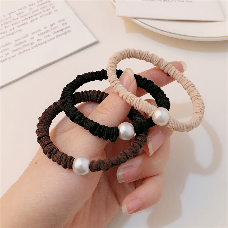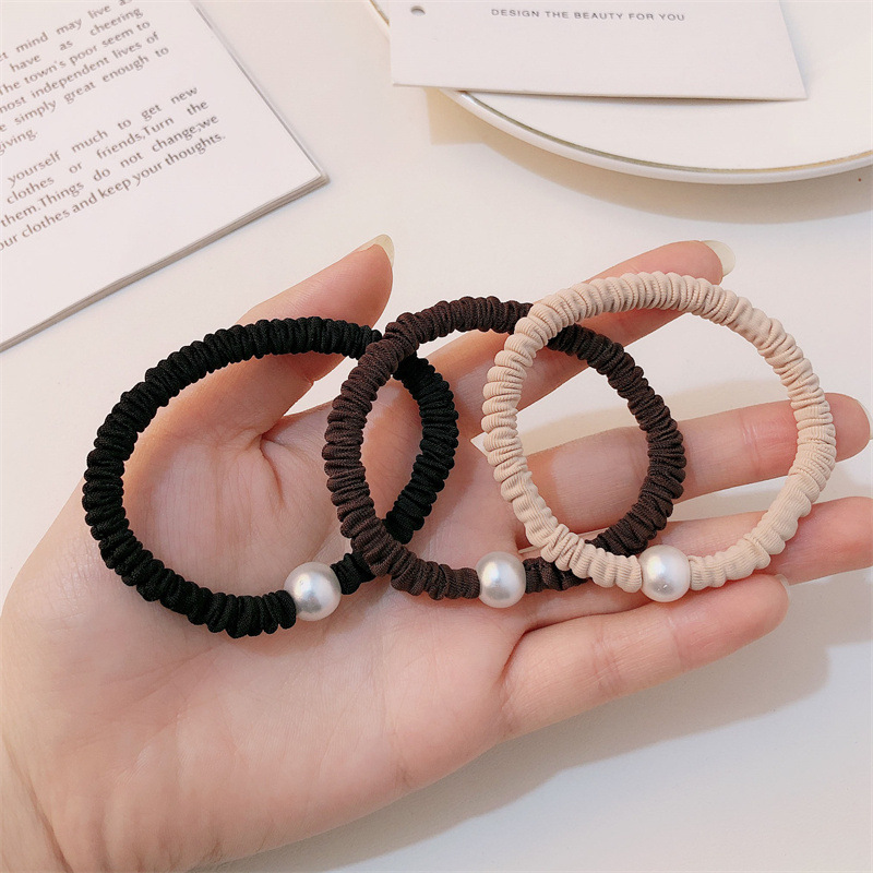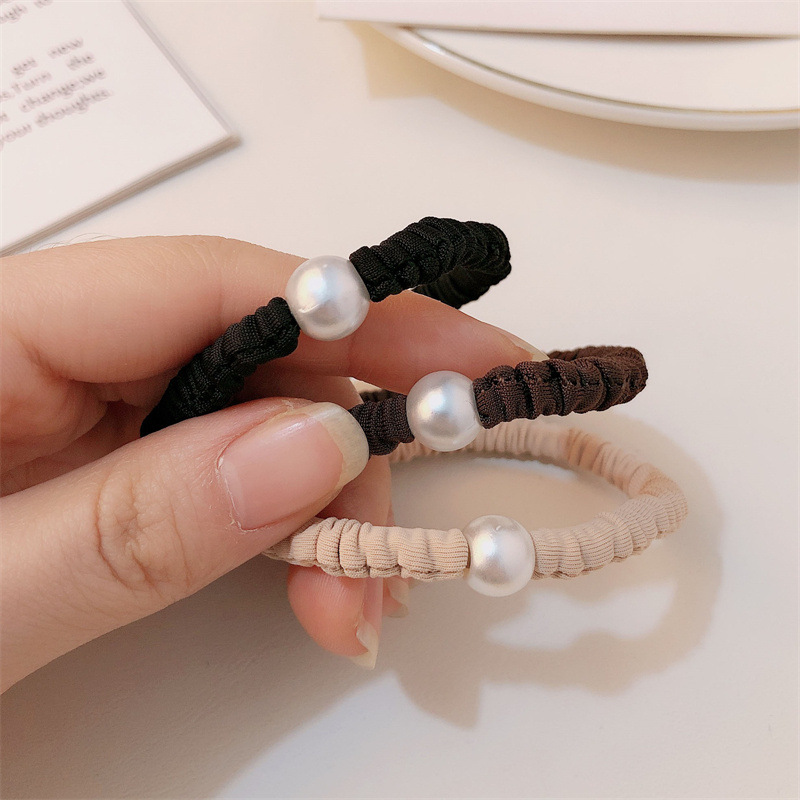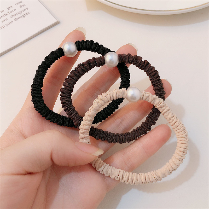 Correas de pelo de intestino grueso de perlas de estilo pequeño de estilo coreano, temperamento simple, cuerda para el cabello de alta elasticidad, banda de goma, cuerda para el cabello, accesorios para el cabello para mujeres
