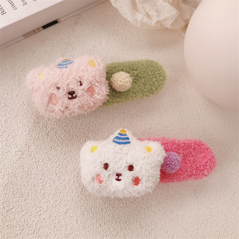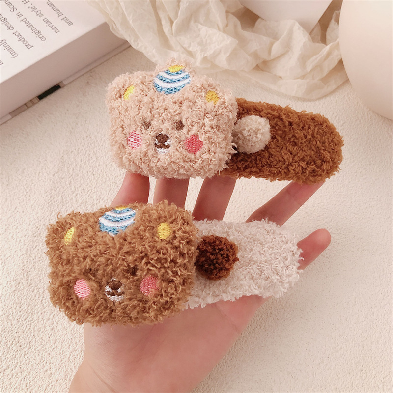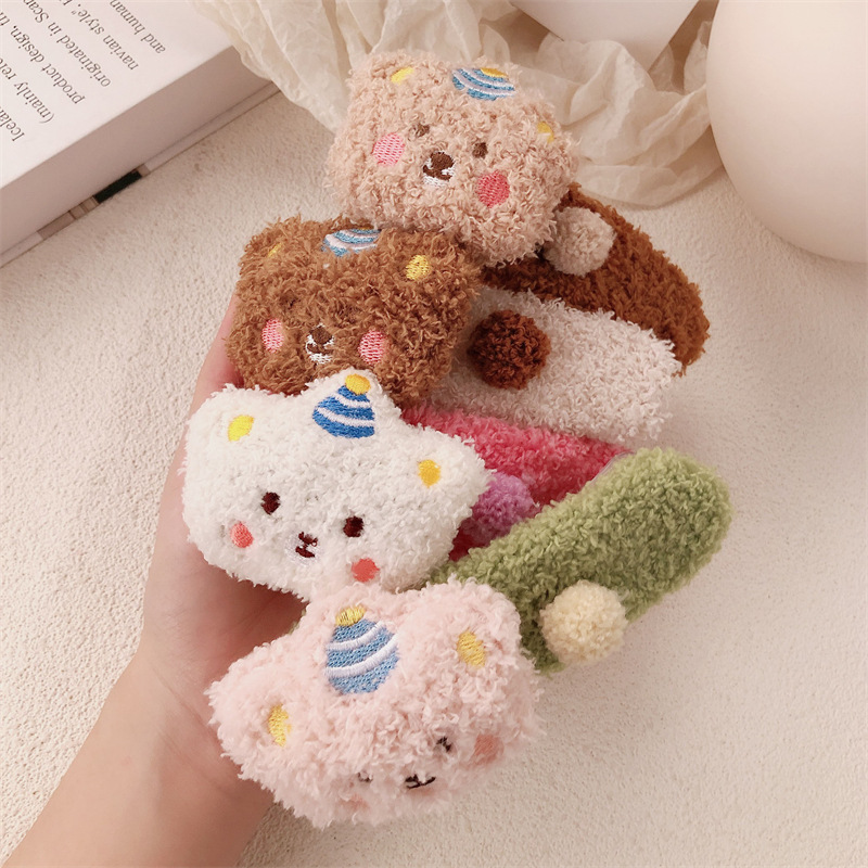 Clip de pelo de peluche lindo oso super grande clip de boca de pato de alto nivel de invierno / otoño lateral frisa clip de cabello de niña clip de cabello