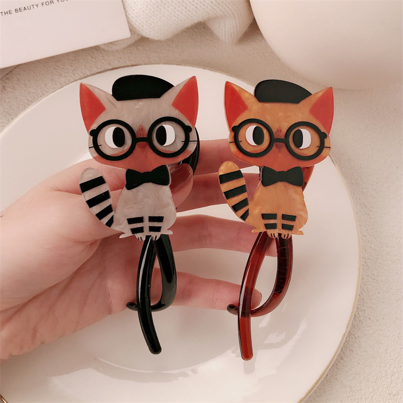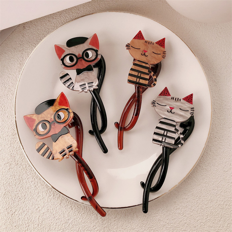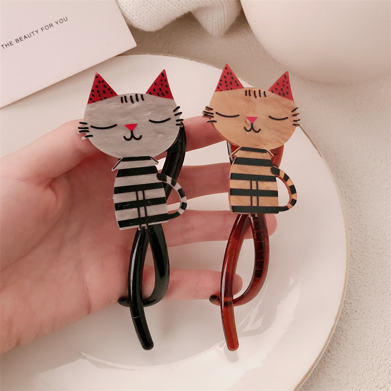 Cariño interesante lindo gato twist clip 2024 nuevo alto sentido de la cabeza detrás de una palabra agarrar clip de cabello de mujer tarjeta de cabello tocado