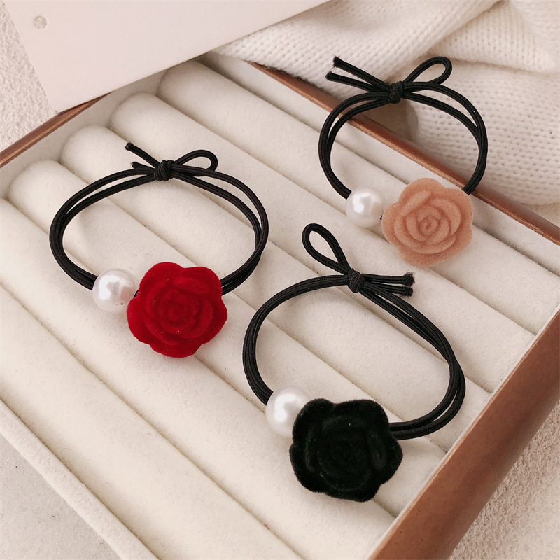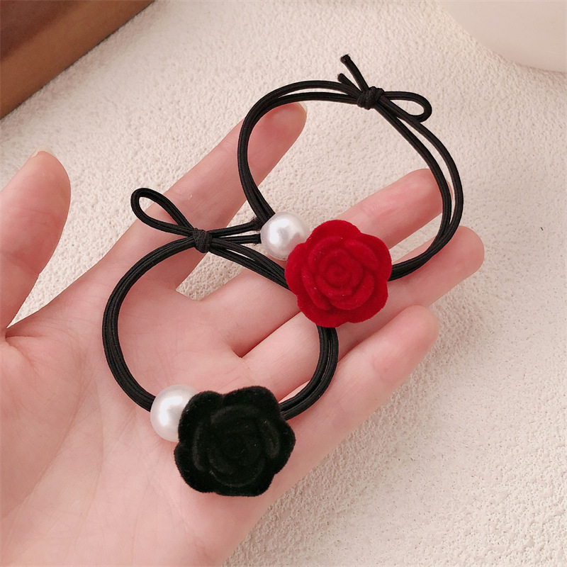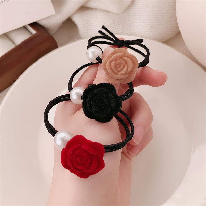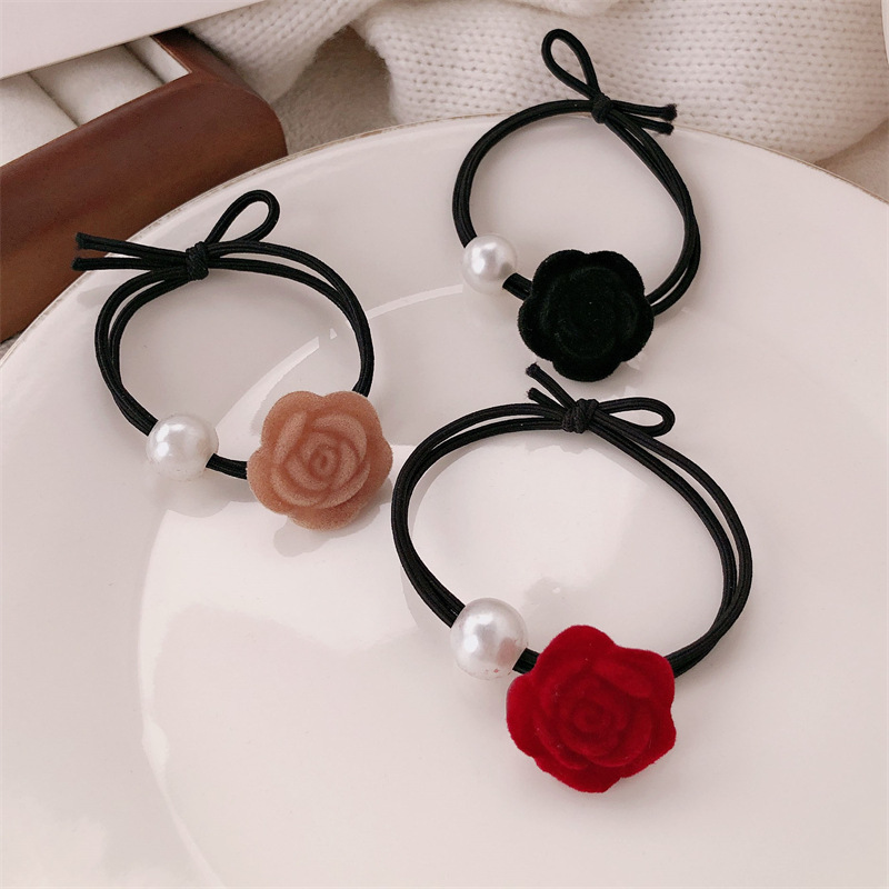 Temperamento francés retro perla flor rosa cuerda para el cabello lazo para el cabello de alta elasticidad cuerda para el cabello de cola de caballo banda de goma accesorios para el cabello femenino