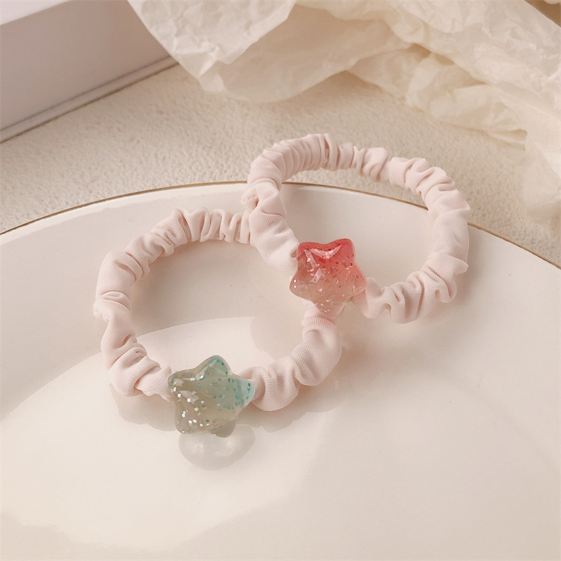 Lindo y dulce polvo suelto amor lazo para el cabello temperamento femenino estrella círculo de intestino delgado cuerda para la cabeza todo fósforo cola de caballo alta cuerda para el cabello accesorios para el cabello
