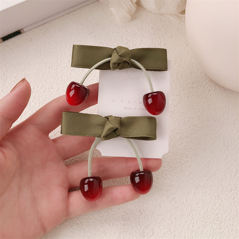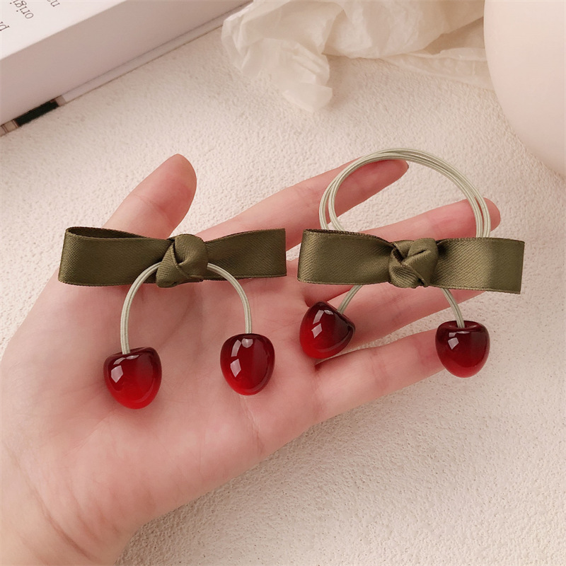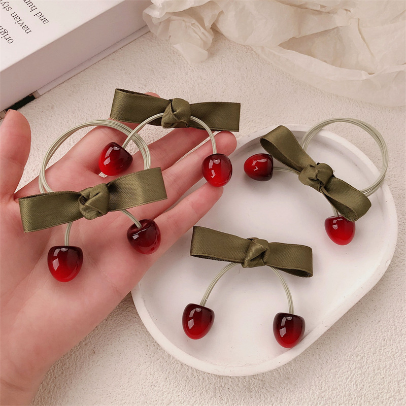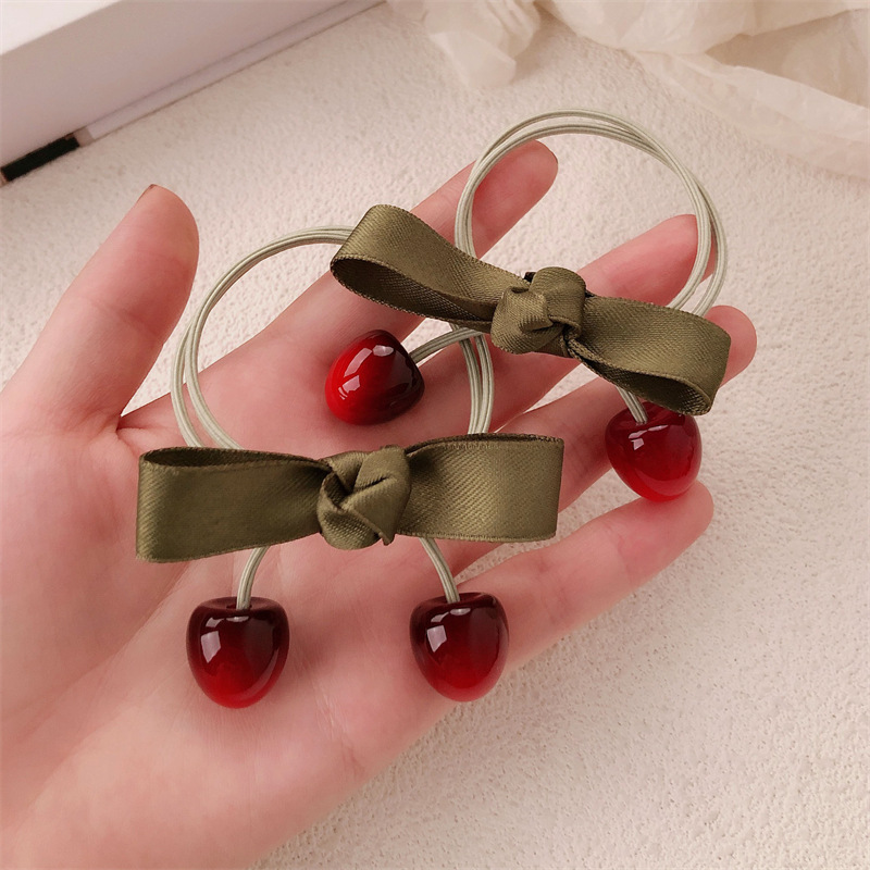 Nuevo anillo de cereza de fruta dulce chica atada cuerda de cabello arco de alta elasticidad correa de goma cabeza adornos para el cabello