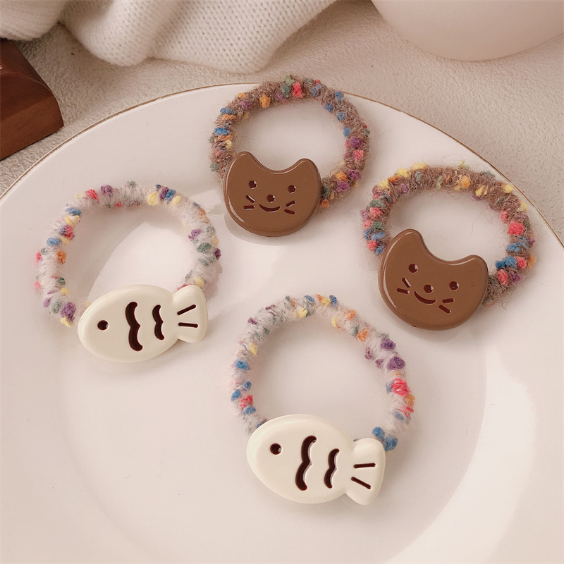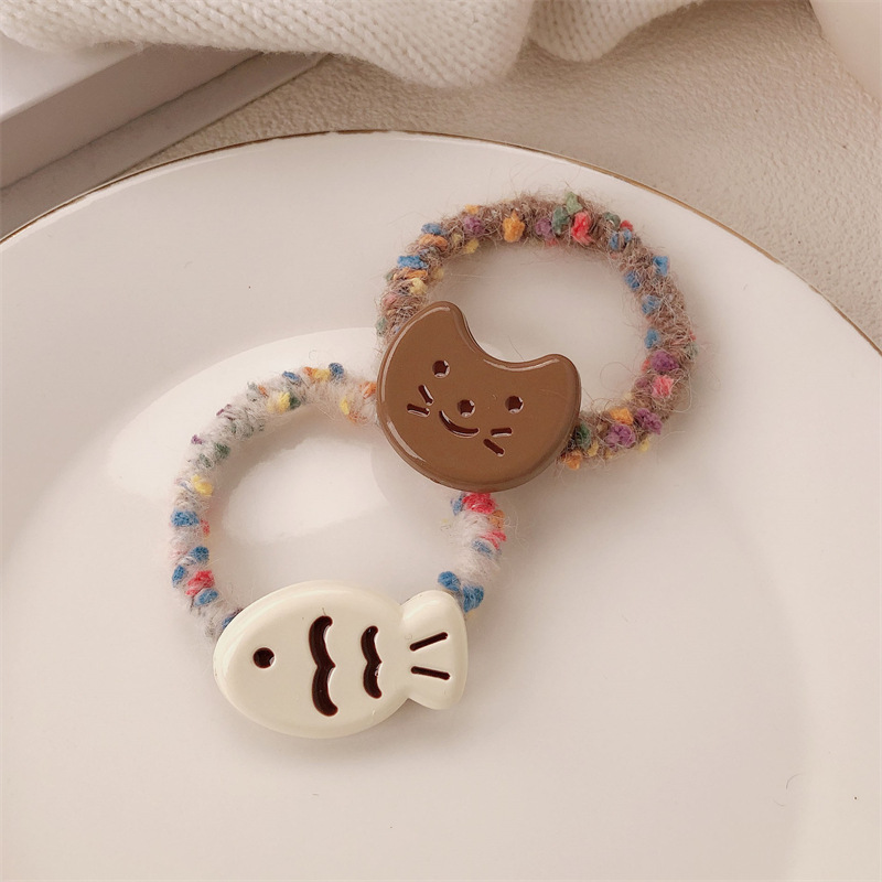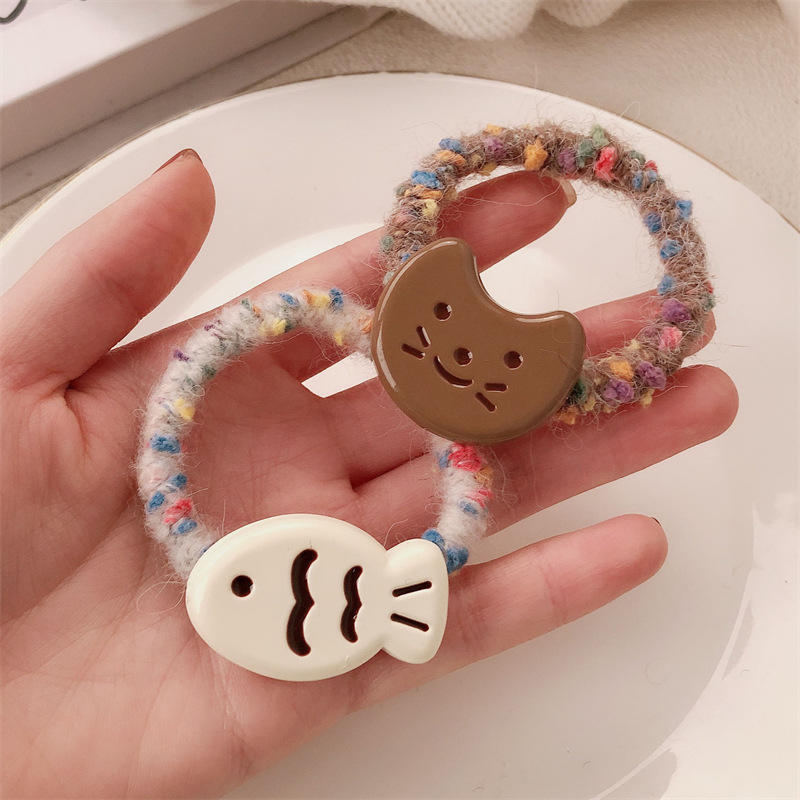 Anillo japonés de cabello de gato y pez curry corazón de niña lindo cabello de cabello de alta elasticidad cabello de cabello de pez pequeño adornamiento