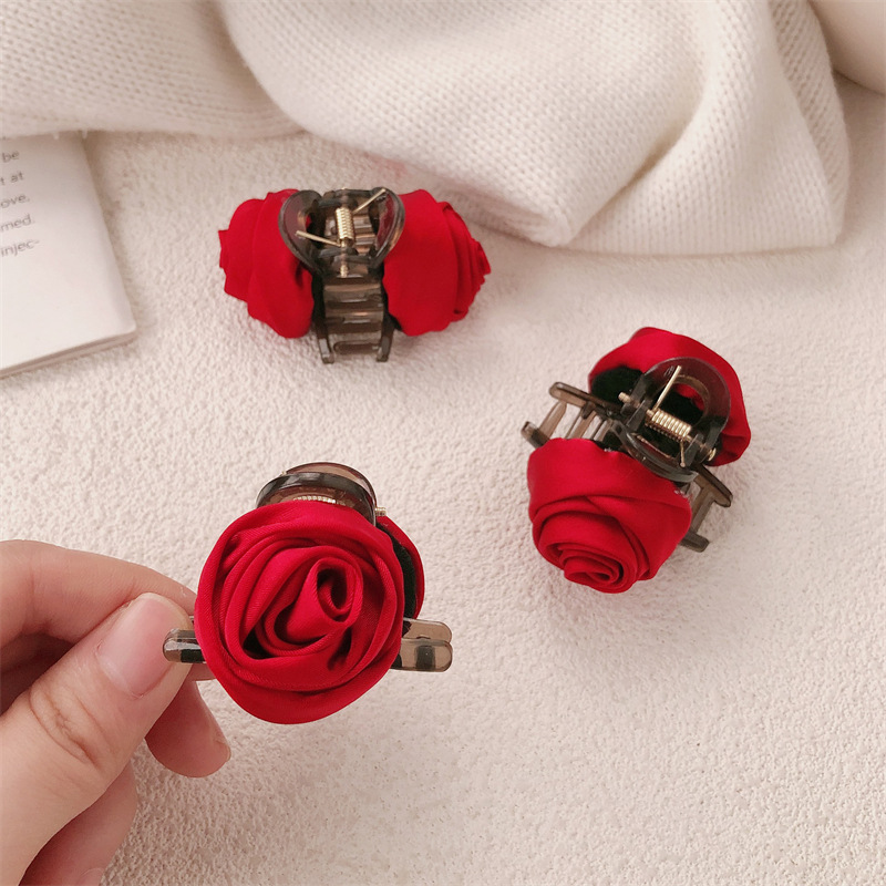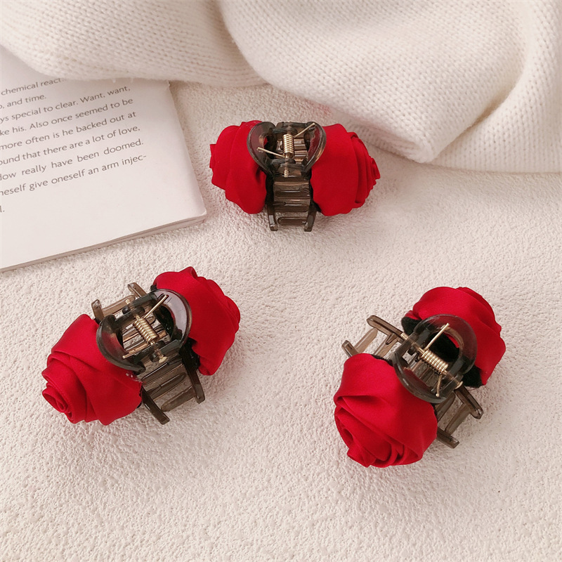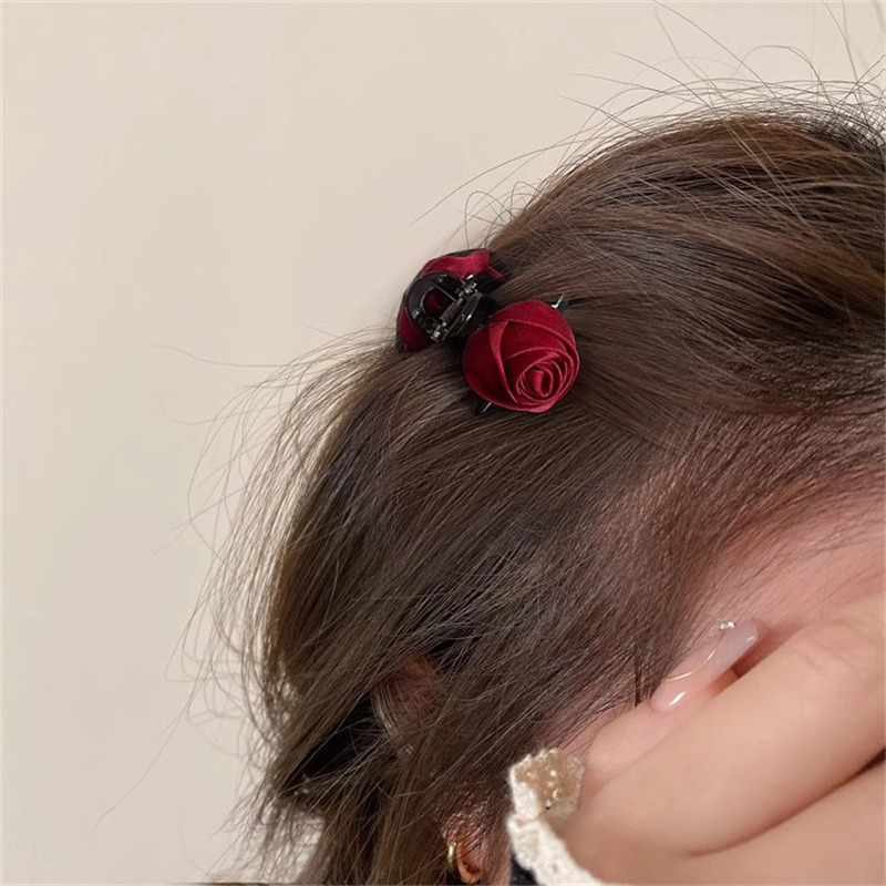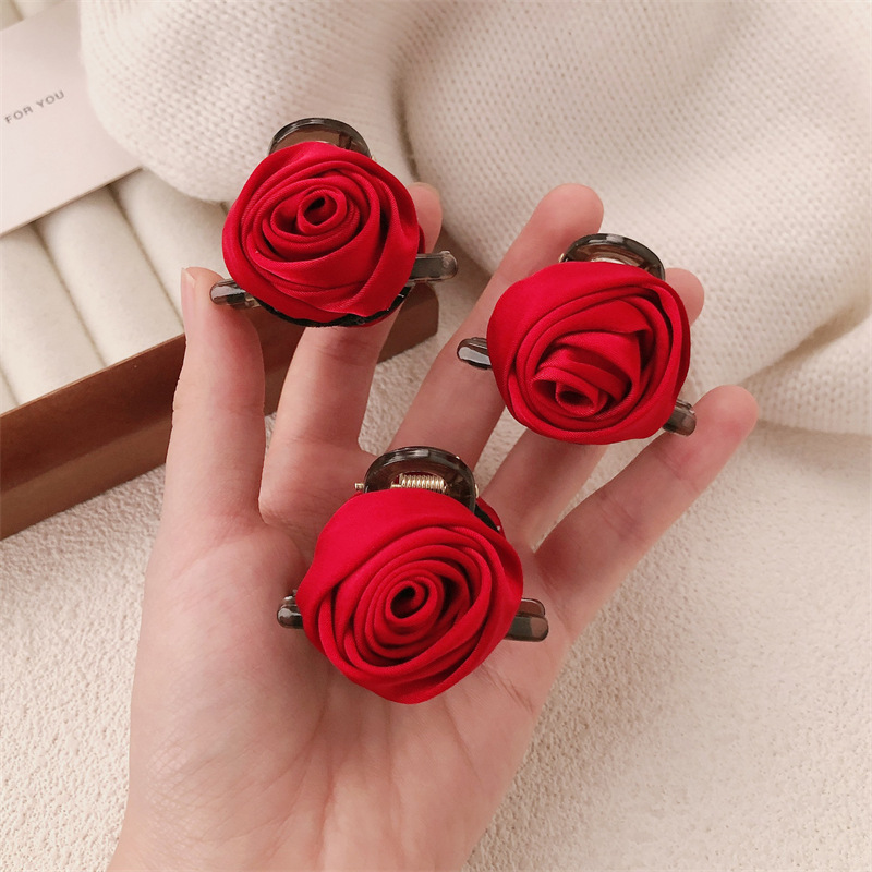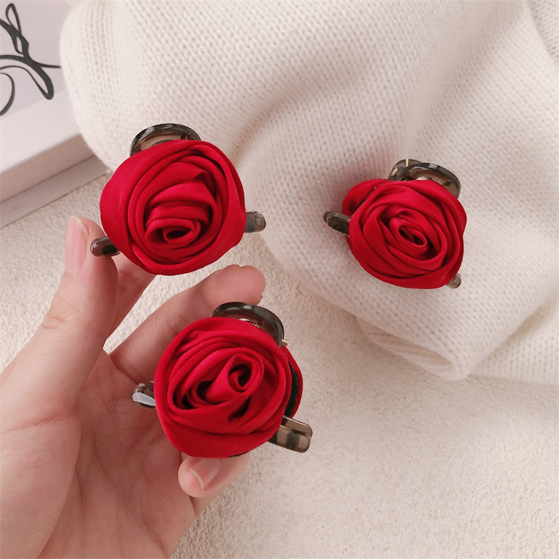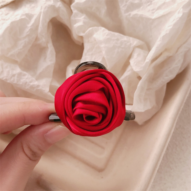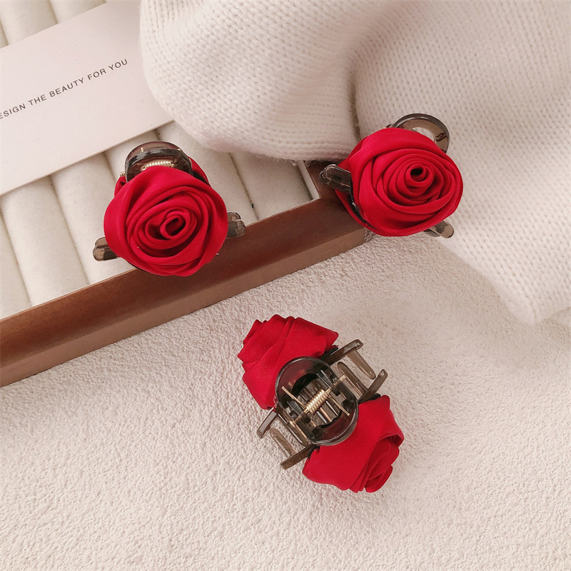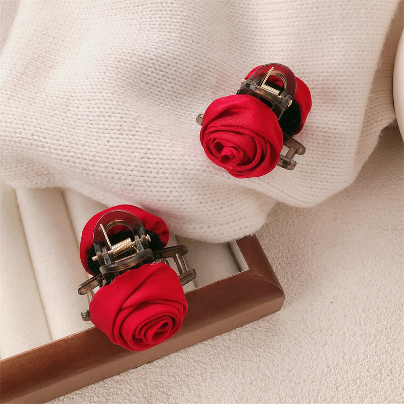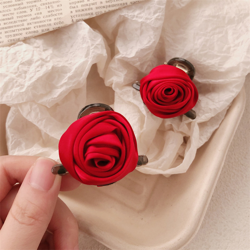 Clip de cabeza de princesa rosa roja satinada pequeña mujer lateral tocado clip de cabello de cabeza de tiburón clip de cabello de mitad