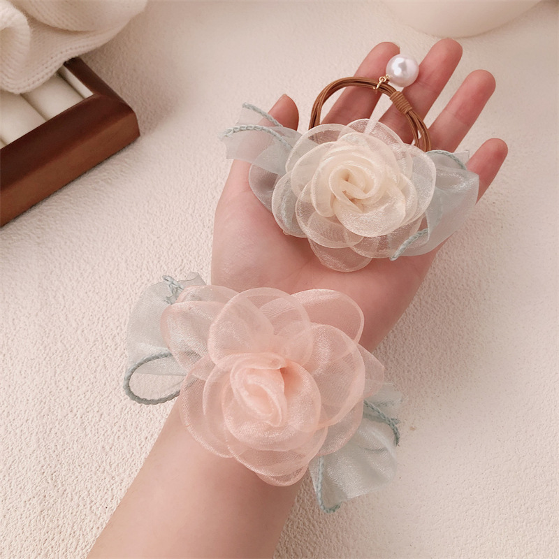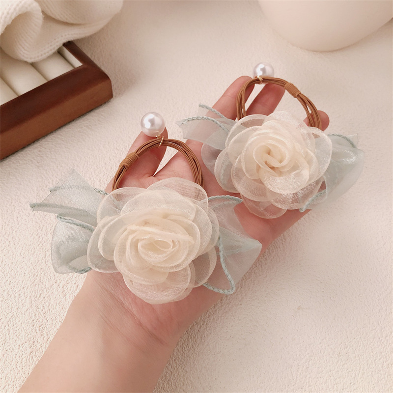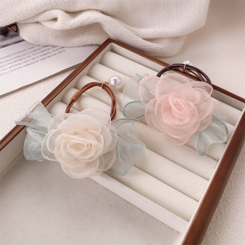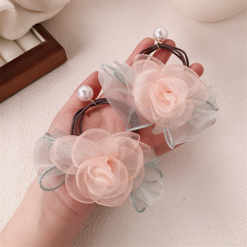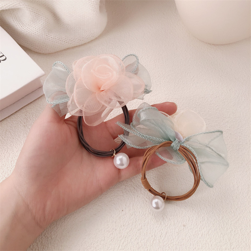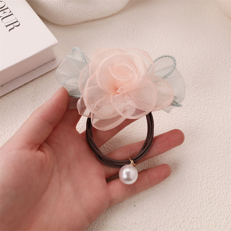 Anillo de cabello coreano de flores de perlas de perlas de corda de cabello dulce de banda de goma de alta elasticidad adornos para el cabello